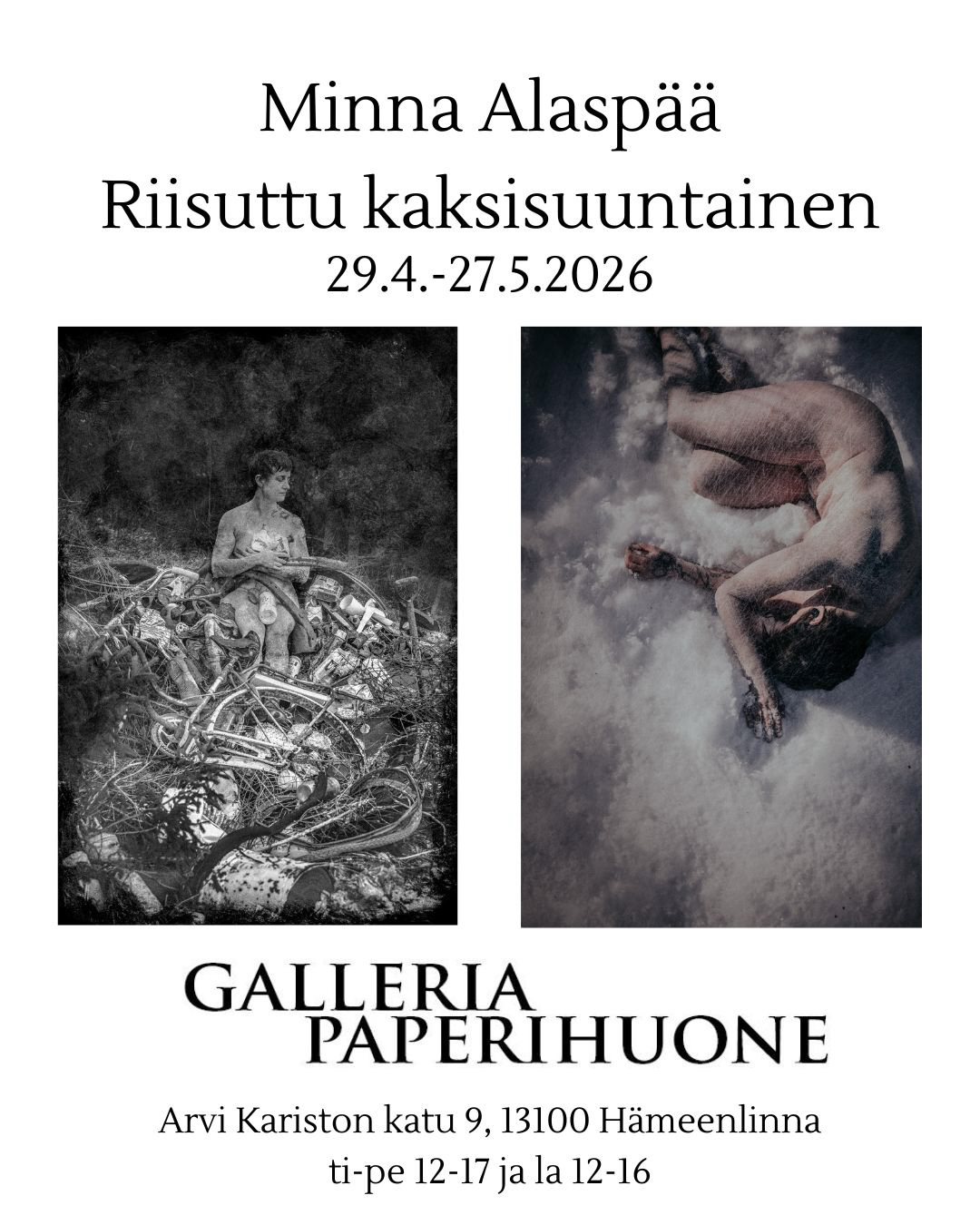 Ajankohtaista Huhtikuussa gallerialla kuvataiteilijat Greta Isola ja Alma Peltola Jos haluat saada ajankohtaiset näyttelytiedotteet sähköpostiisi, niin ilmoita yhteystiedot paperihuone@gmail.com tai lähetä tästä suoraan: ← BackYour message has been sent Email(Vaaditaan) LähetäSubmitting form Δ Lue lisää Paperihuone ry:n jäsenyydestä