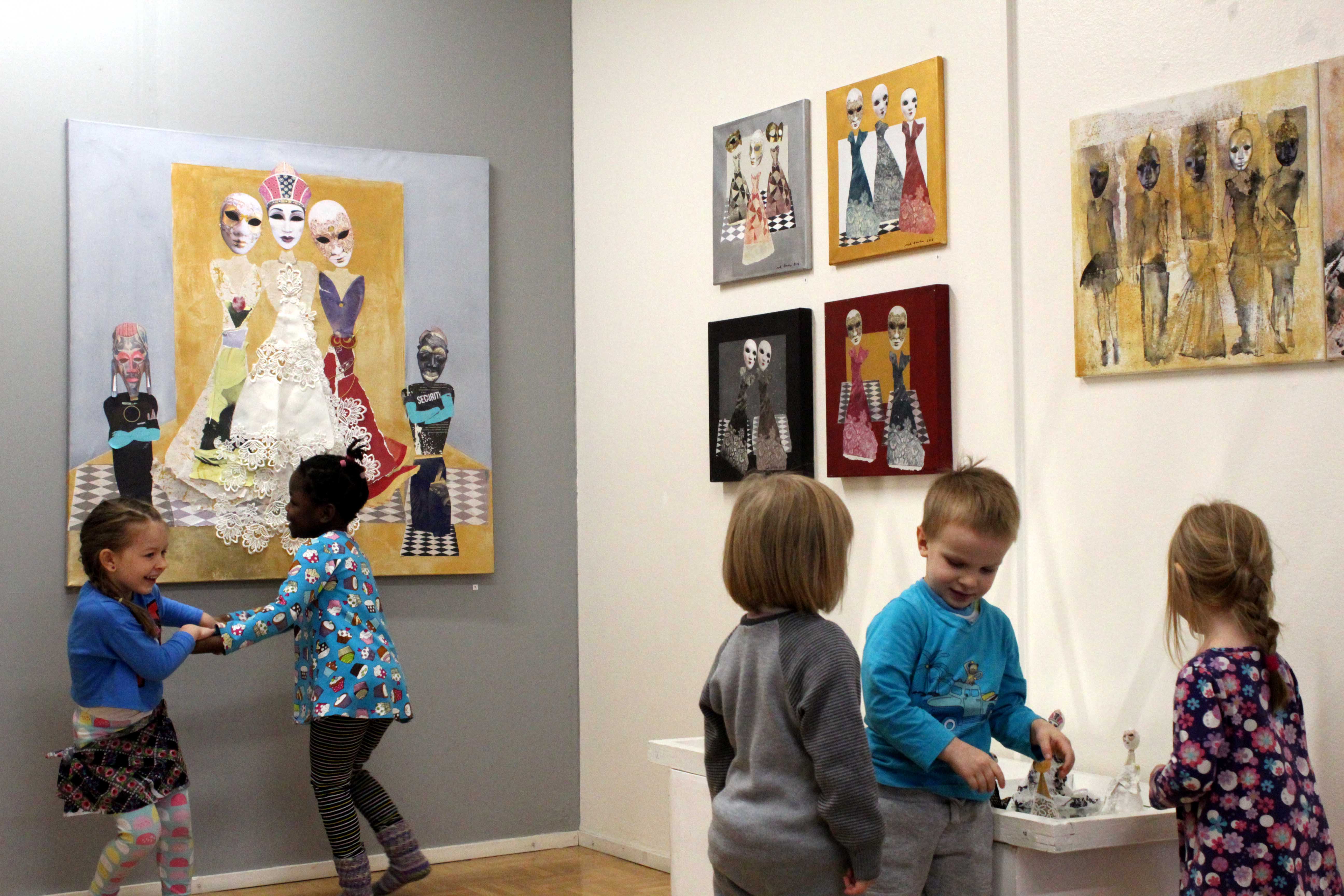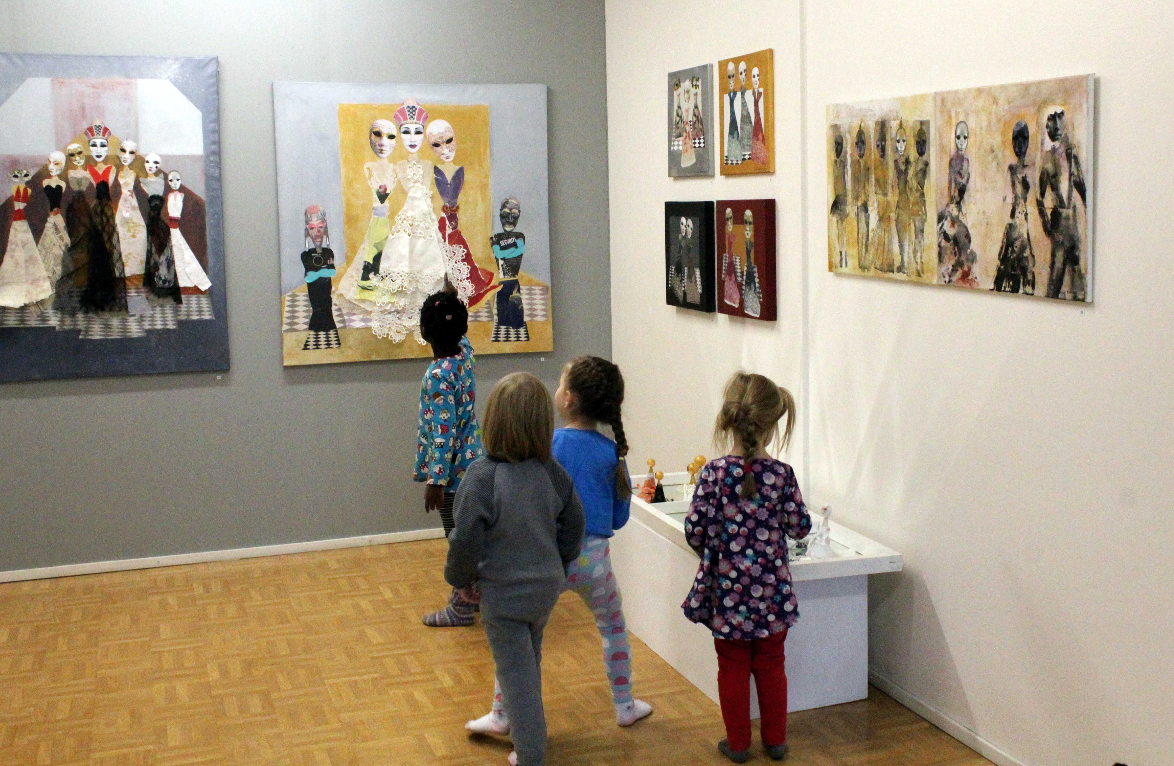 Ulkona satoi silkkaa räntää, joten töiden kuljettaminen bussikyydillä olisi ollut hankalaa. Tervetuloa lapset uudelleen! Ja tervetuloa myös aikuiset. Marjaleena Etulan ”Naisen naamio” -näyttely on avoinna 5.11.2016 asti.