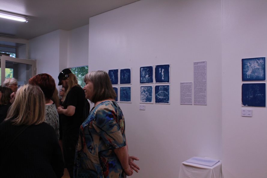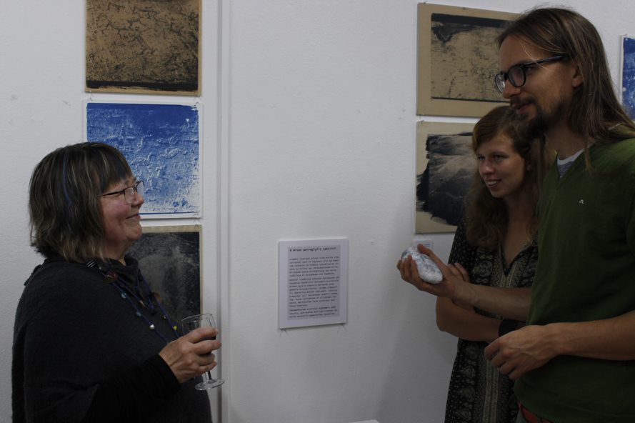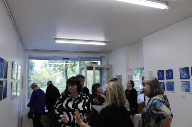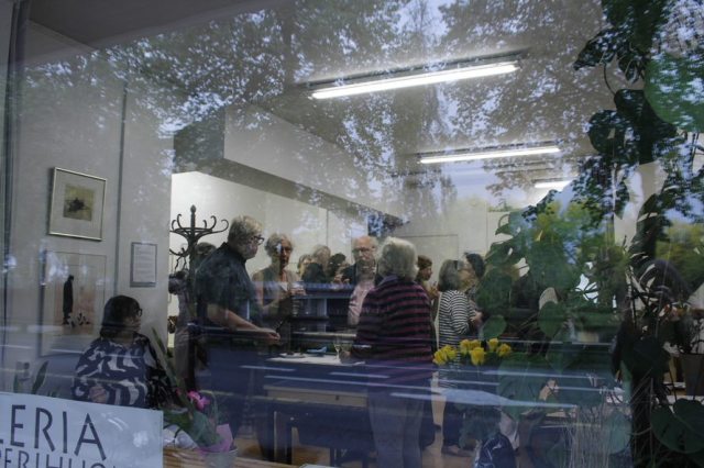 Syyskuun alussa galleriaan ja grafiikanpajalle kokoontui runsas joukko avajaisväkeä, kun vietimme Pirkko Huttusen näyttelyn ”Zalavrugan metsästäjät – Aurinkokuvia muinaisuudesta” avajaisia. Grafiikanpajan puolella on Paula Jalassola-Huttusen on grafiikan teoksista koottu ”Matkalla” -näyttely.