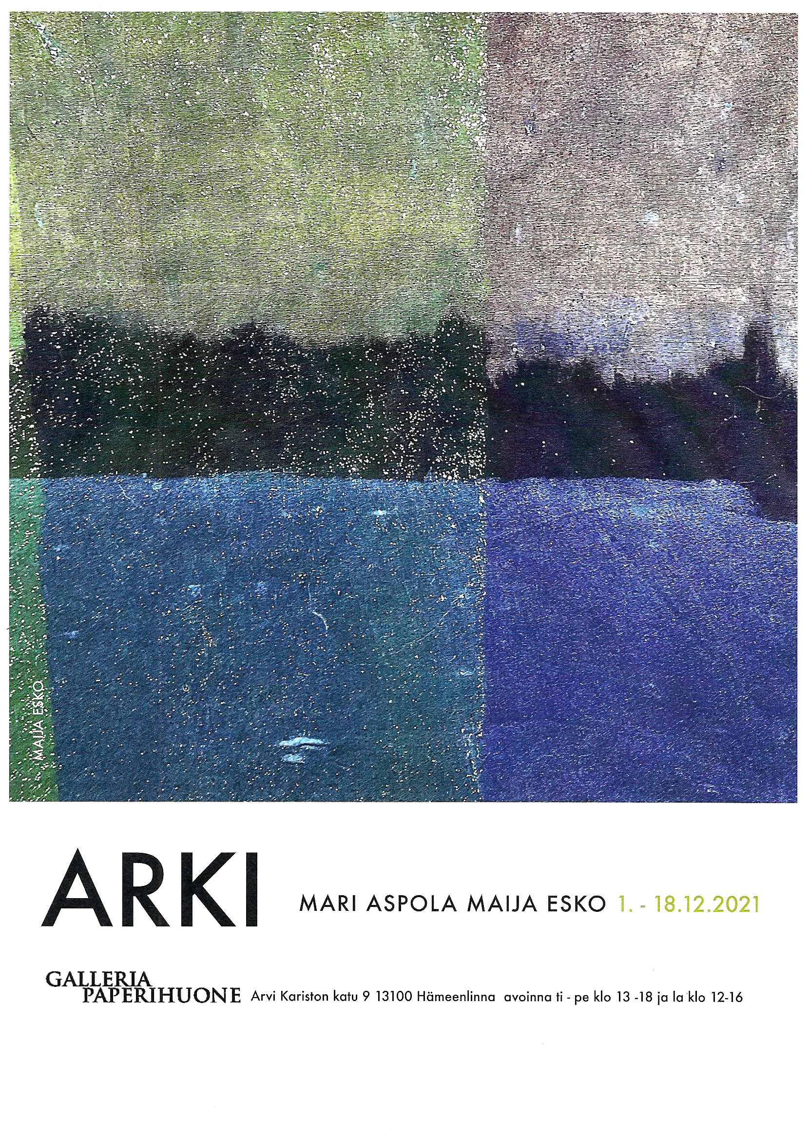 Galleria Paperihuoneella 1.12. – 18.12.2021 on esillä Mari Aspolan ja Maija Eskon näyttely Arki