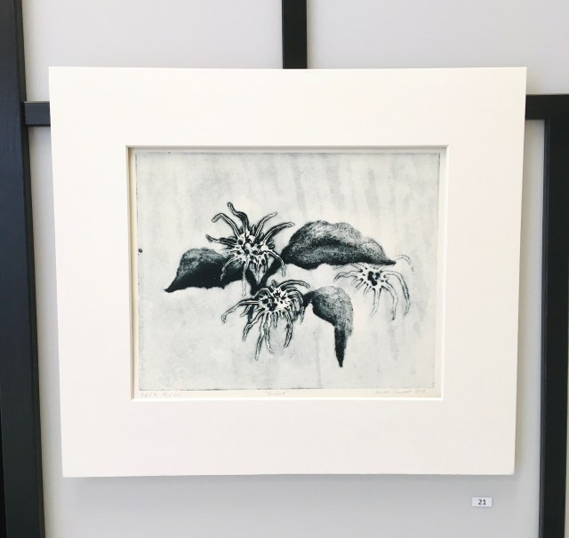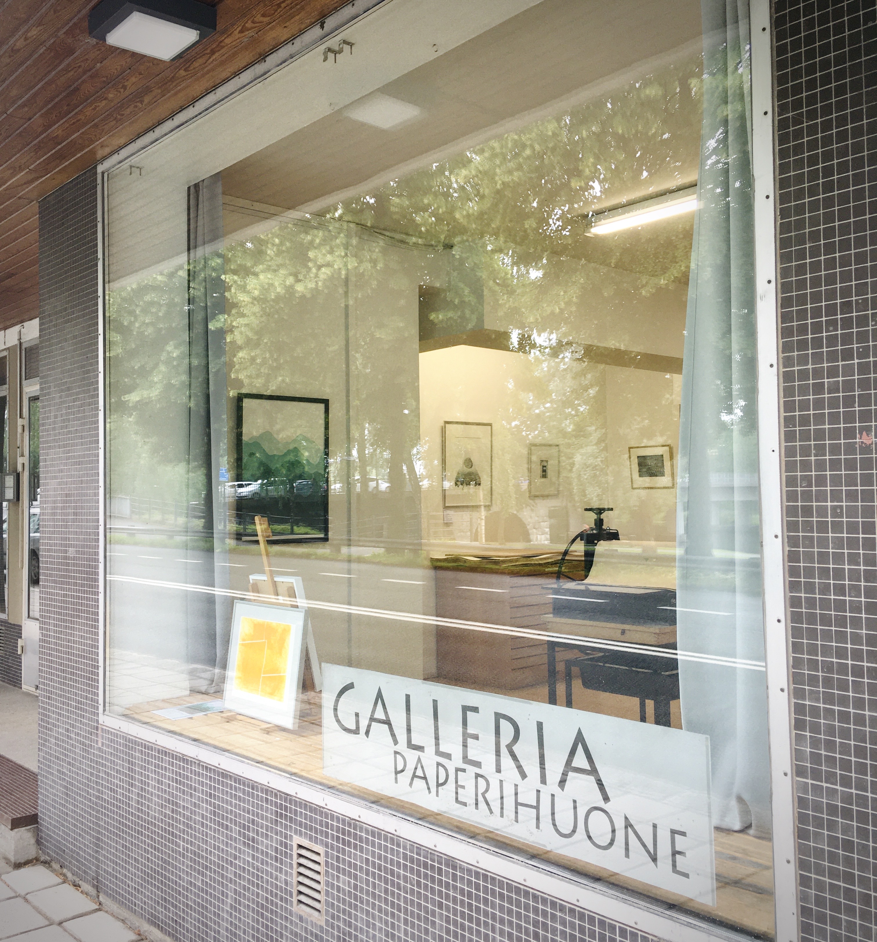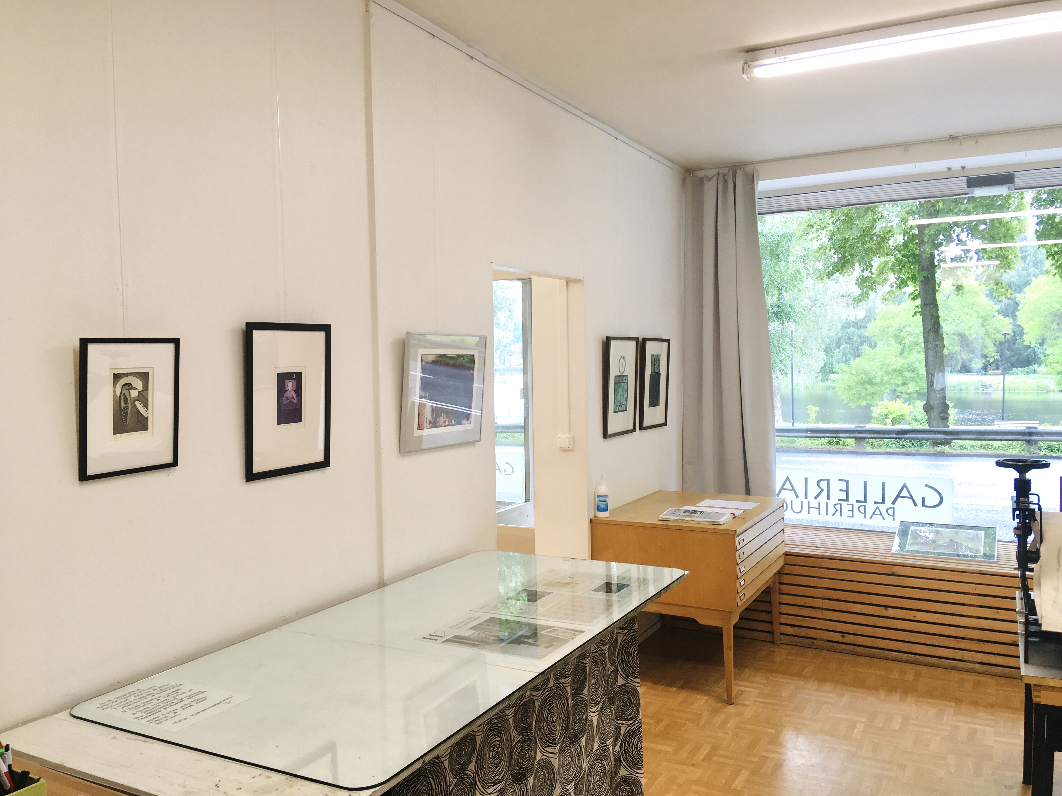 Grafiikanpajan näyttely on esillä sekä Paperihuoneella että Paperikammarissa. Kammari sijaitsee aivan Gallerian vieressä ja toimii pääsääntöisesti työskentelytilana taiteilijoille. Paperikammarissa järjestetään myös erilaisia työpajoja. Kesänäyttely keräsi mukavan määrän osallistujia ja niinpä ripustimme töitä myös Paperikammarin puolelle.