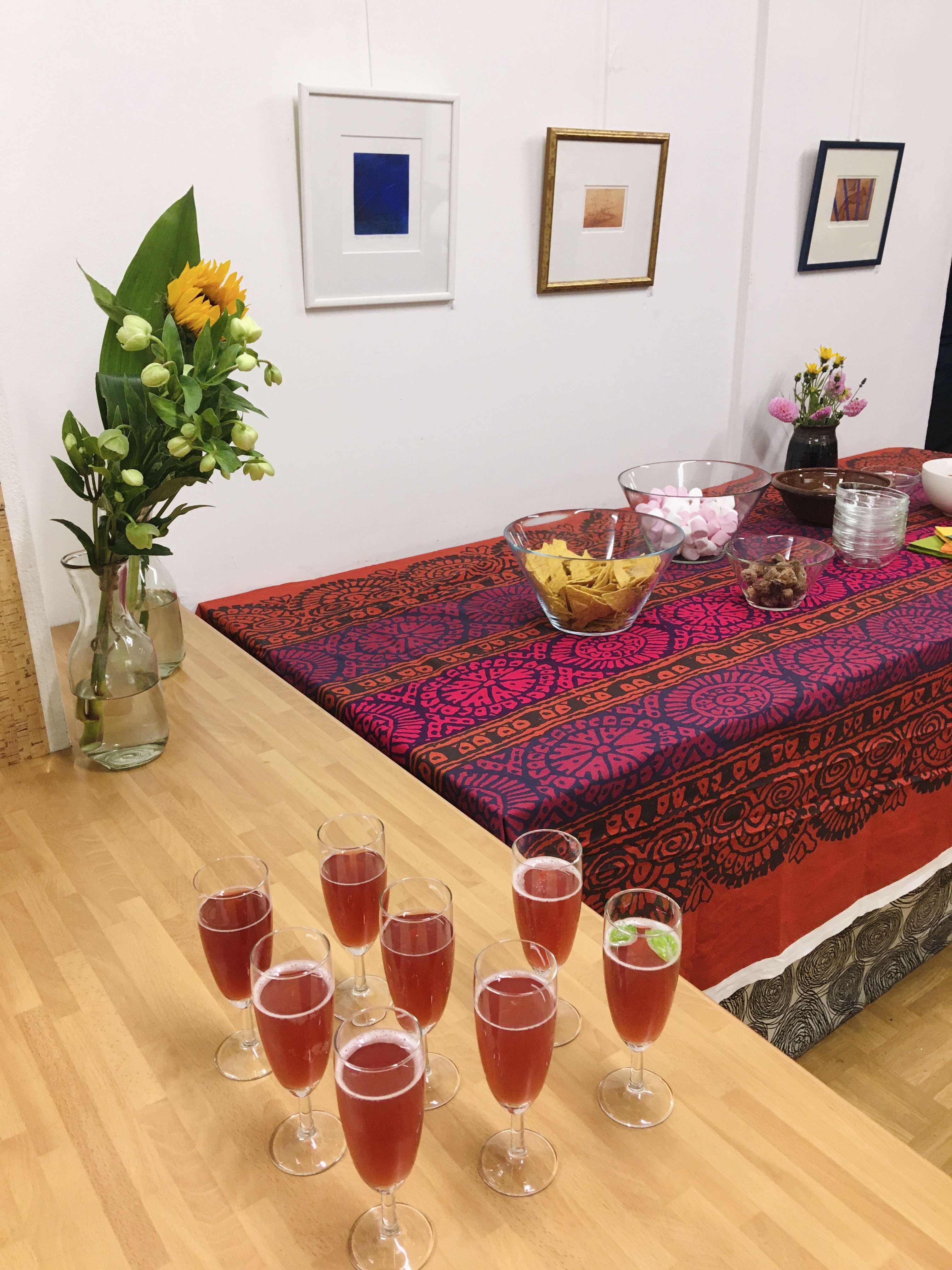 Näyttelyn ajavaisia vietettiin perjantaina 30.9. Juhlallisuudet aloitettiin juhlajuomilla ja taiteilijan kukittamisella. Tämän jälkeen hän kertoi näyttelystään ja teostensa taustoista.