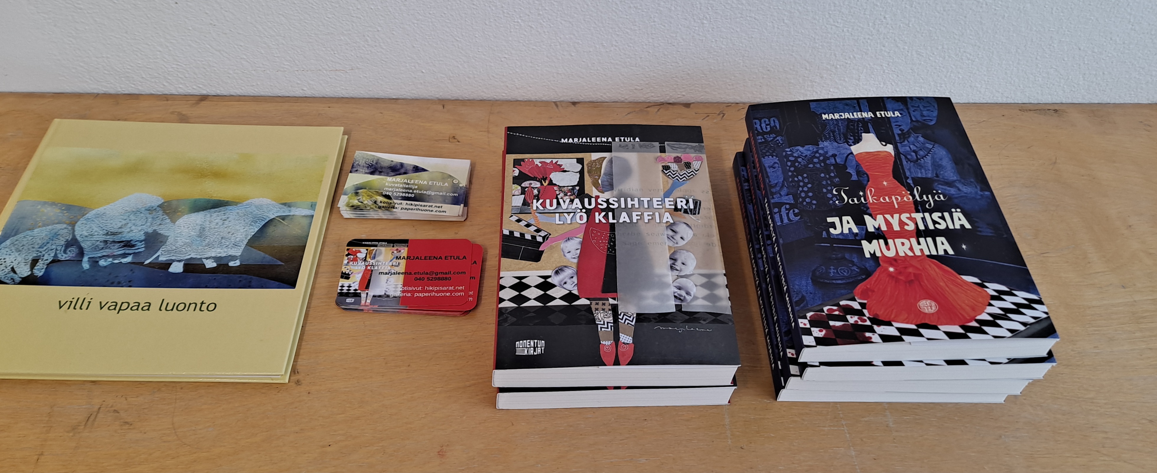 Eikä siinä vielä kaikki. Hän juhlii ensimmäisen kaunokirjallisen teoksensa Taikapölyä ja mystisiä murhia julkistamista tiistaina 8.10.2024 Paperihuoneella. ”Olen selvinnyt harmaasta arjesta mieheni Jussin kuoleman jälkeen taiteen ja tarinoiden kirjoittamisen ansiosta”, hän kertoo liikuttuneena.