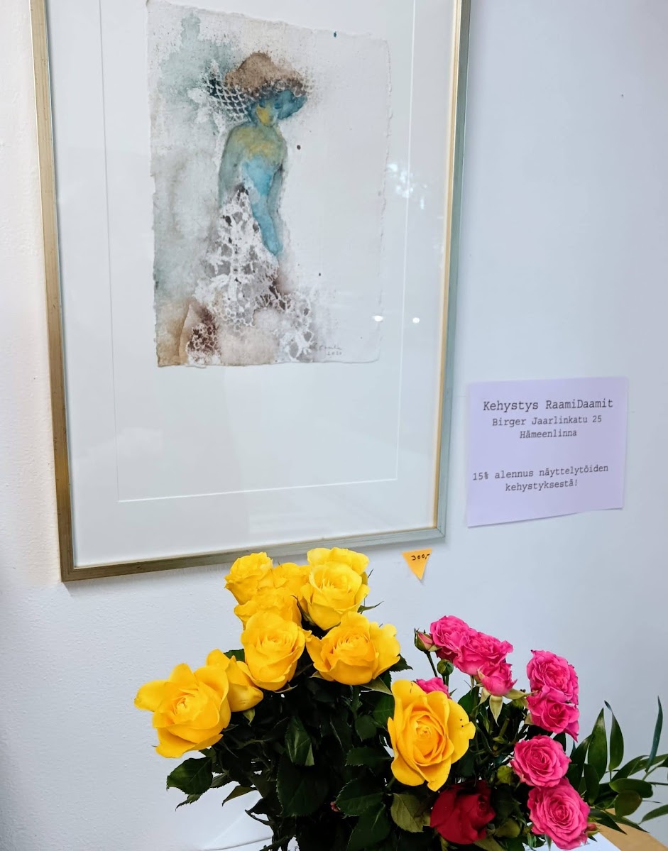 Marjaleena Etula ripusti grafiikanpajan puolelle ja alakerran työhuoneeseen pop up myyntinäyttelyn, jossa on esillä kymmenen viime vuoden aikana syntyneitä teoksia ystävähintaan. Työt saa heti mukaan. Jo avajaisissa viisi eri tekniikoin toteutettua työtä pääsi uuteen kotiin.