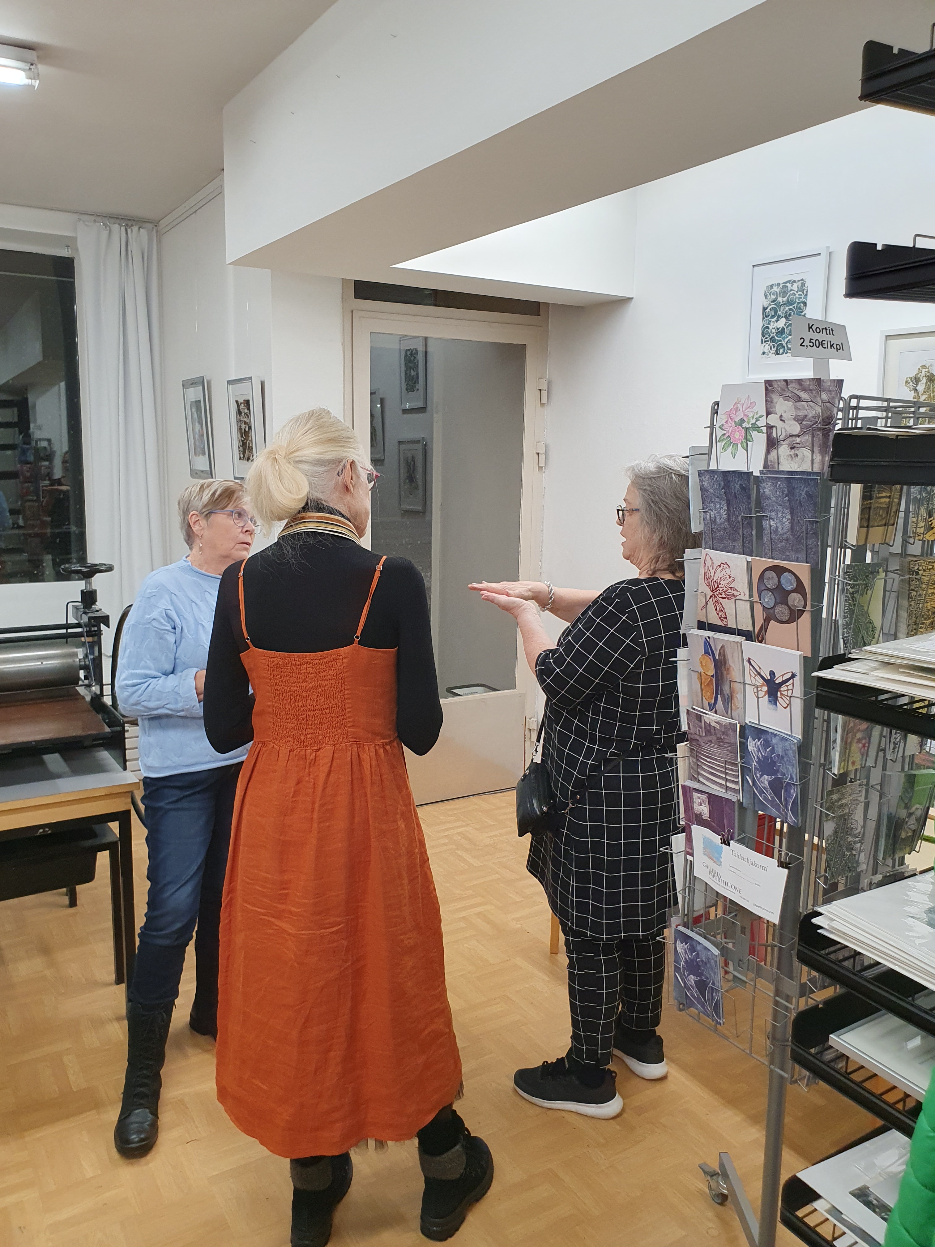 Galleria Paperihuoneella on marraskuun ajan esillä kuvataiteilijoiden Ritva Kankaan ja Riitu Uosukaisen näyttely Vaeltajat. Grafiikanpajalla on esillä Paperihuone ry:n jäsentaiteilija Leena Mäki-Ketelän näyttely Työn iloa.