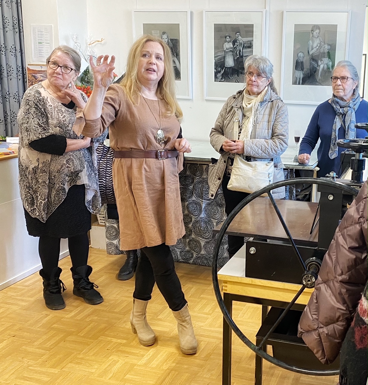 Tiina-Katriina Mustosen näyttely Mielenkiintoisaa, joka koostuu puupiirroksista. Teoksiin on päässyt niin Hämeenlinnan katukuvaa, Aurajoen maisemia, sekä Mustjôe metsää.