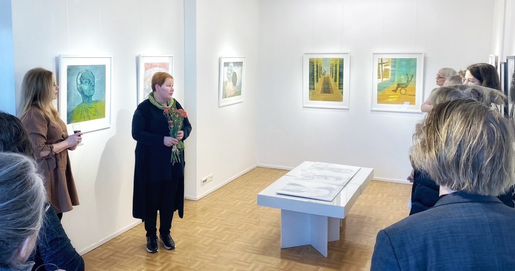 Grafiikanpajan puolella ukrainalaisen Yuliia Nemyrovskajan Mielenkiintoisia tarinoita satukissojen elämästä -näyttely.