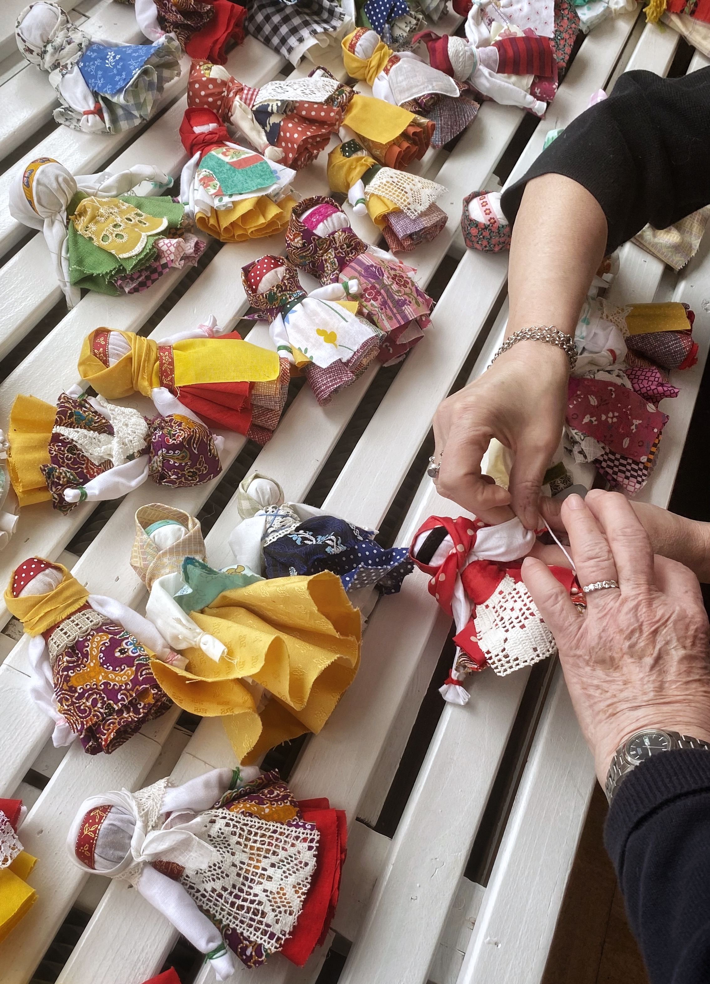 Ikonimaalareiden tekemät Motanka-nuket kuuluvat ukrainalaiseen perinteeseen, joita annetaan elämän eri taitekohdissa. Nuket ovat esillä ja myynnissä näyttelyssä.