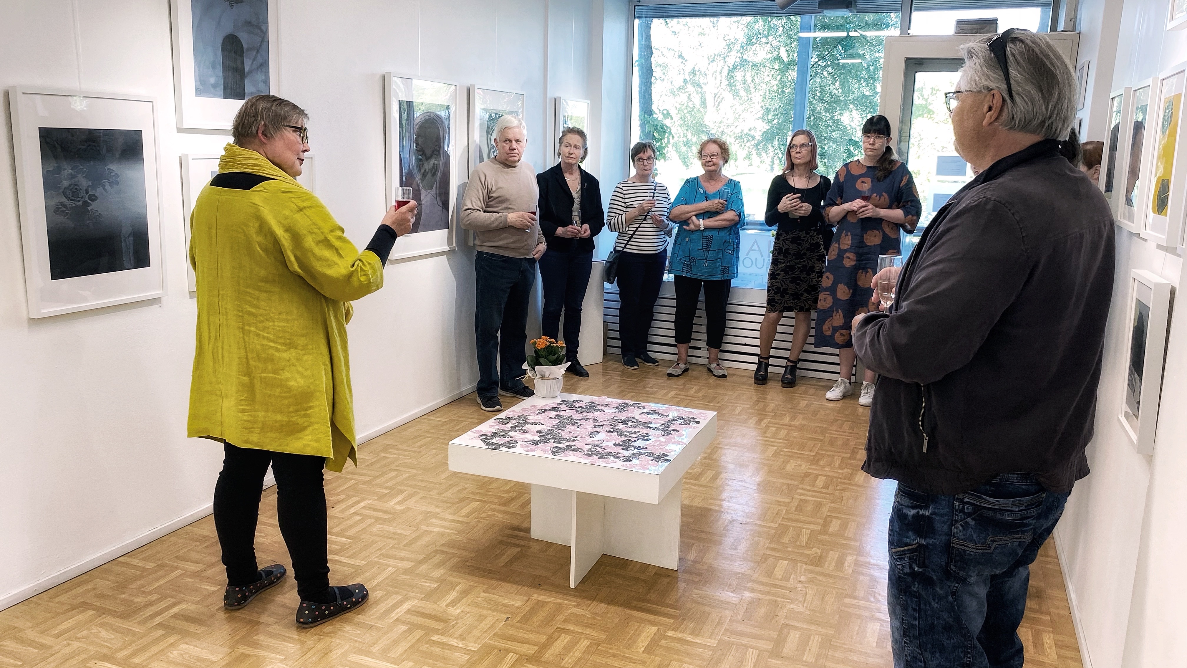 Kuvataiteilija Jaana Tuomiston Mielen huoneet -näyttelyn teokset ovat öljyväripuupiirroksia, jotka on toteutettu useamman kaiverretun laatan tekniikalla ja lisänä käytetty monotypiaa. Teokset ovat vedostettu japaninpaperille uniikkeina yksittäisvedoksina.