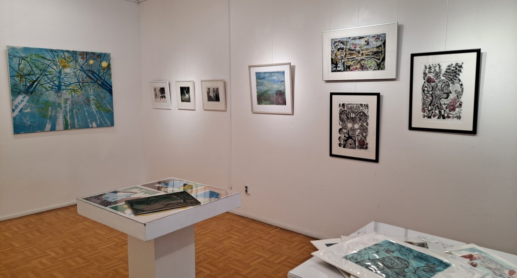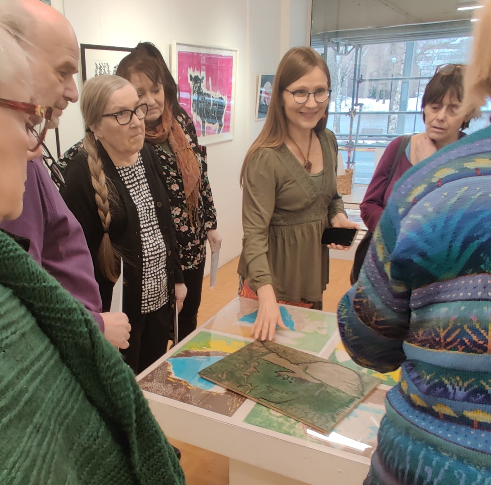 Leena Mäki-Ketelän näyttely Tekemisen iloa kutsuu katsojan löytämään taiteellisen ilmaisun vapautta ja luovaa energiaa. Näyttelyn teoksissa näkyy itse tekemisen nautinto, mikä välittyy voimakkaana tunteena myös katsojalle. Teokset ovat tutkielmia luonnosta ja abstrakteista kuvioista, joissa orgaaniset muodot ja värit kohtaavat vaihtelevissa tekstuureissa. Mäki-Ketelä kertoo, että hänen uusi kotinsa ympäristöineen upean inspiroiva. Koti on metsän reunassa ja maan tasalla. Sieltä hän näkee auringon nousut ja laskut. Yhteys luontoon on hieno ja tämä on upeasti siirtynyt myös hänen teoksiin, jotka ovat usein kokeiluja eri tekniikoin. Tämä näyttely koostuu gellitekniilalla tehdyistä teoksista. Leena Mäki-Ketelä sanoin ”Aina on uutta opittavaa, teoksen syntyminen on ihana tiivis tapahtuma”.
