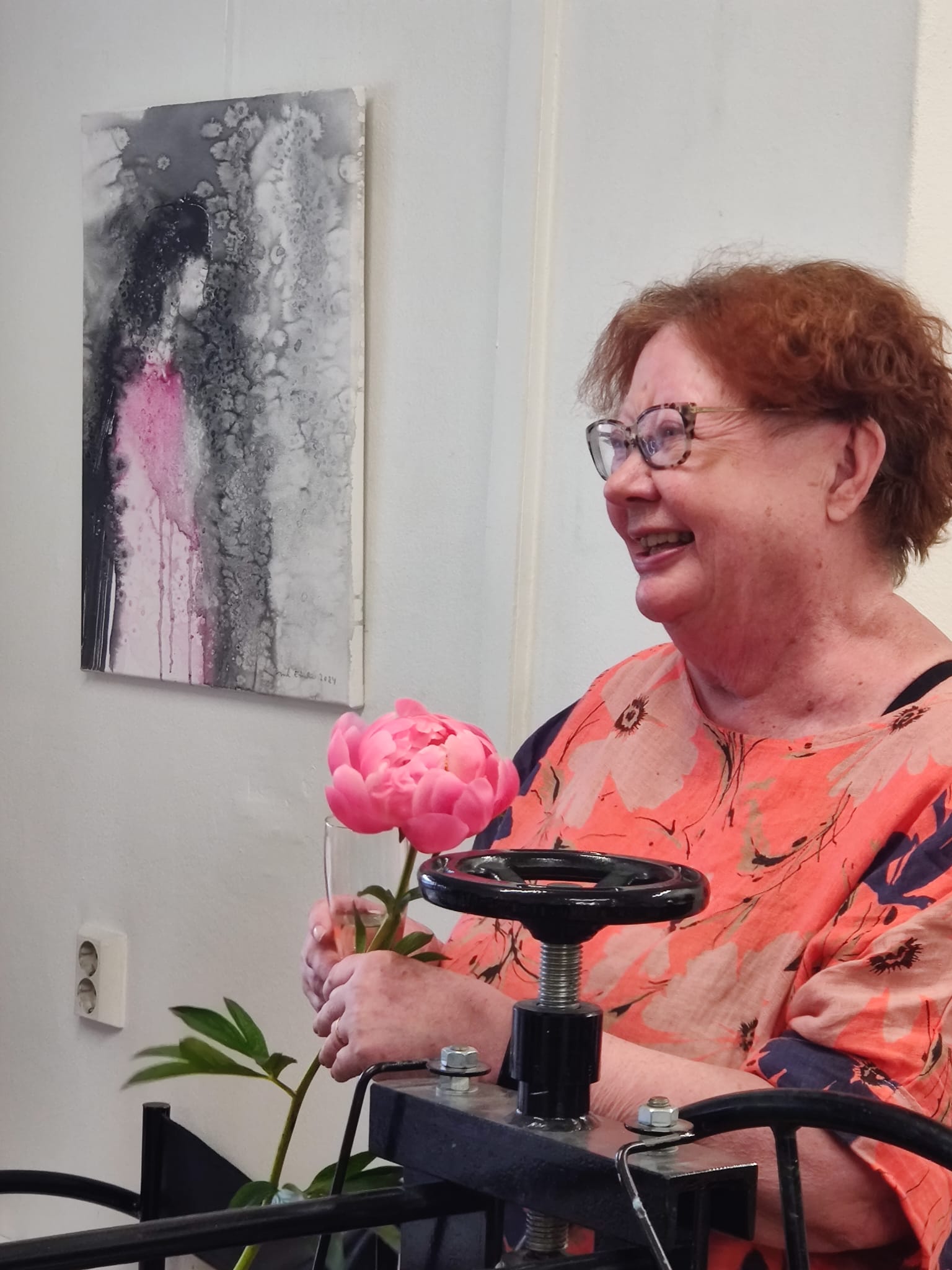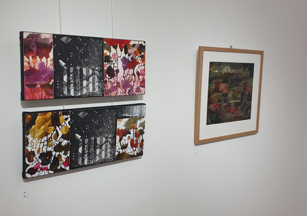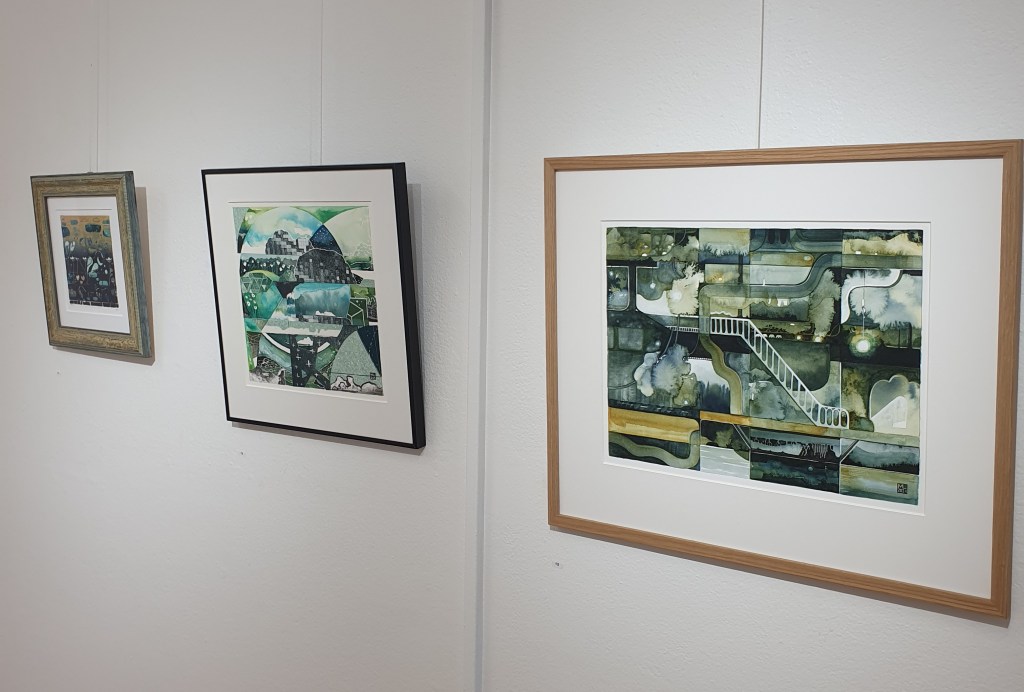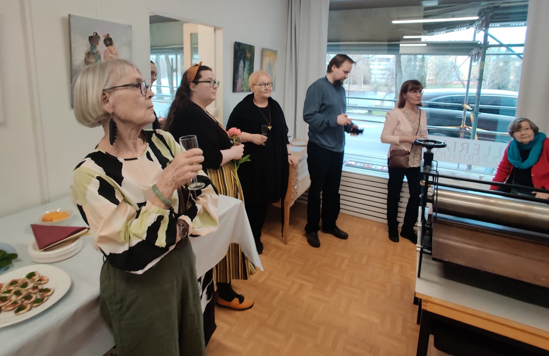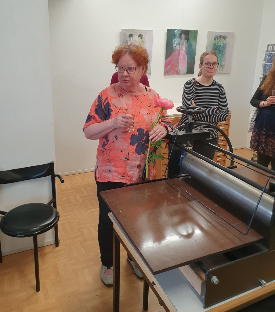 Valmiit työt pääsevät grafiikanpajalle näyttelyyn. Jatkamme vielä kahden kurssikerran verran monotypian tekoa. ”Tämä on mukavaa”, kurssilaiset kiittelivät tehokkaan päivän jälkeen.