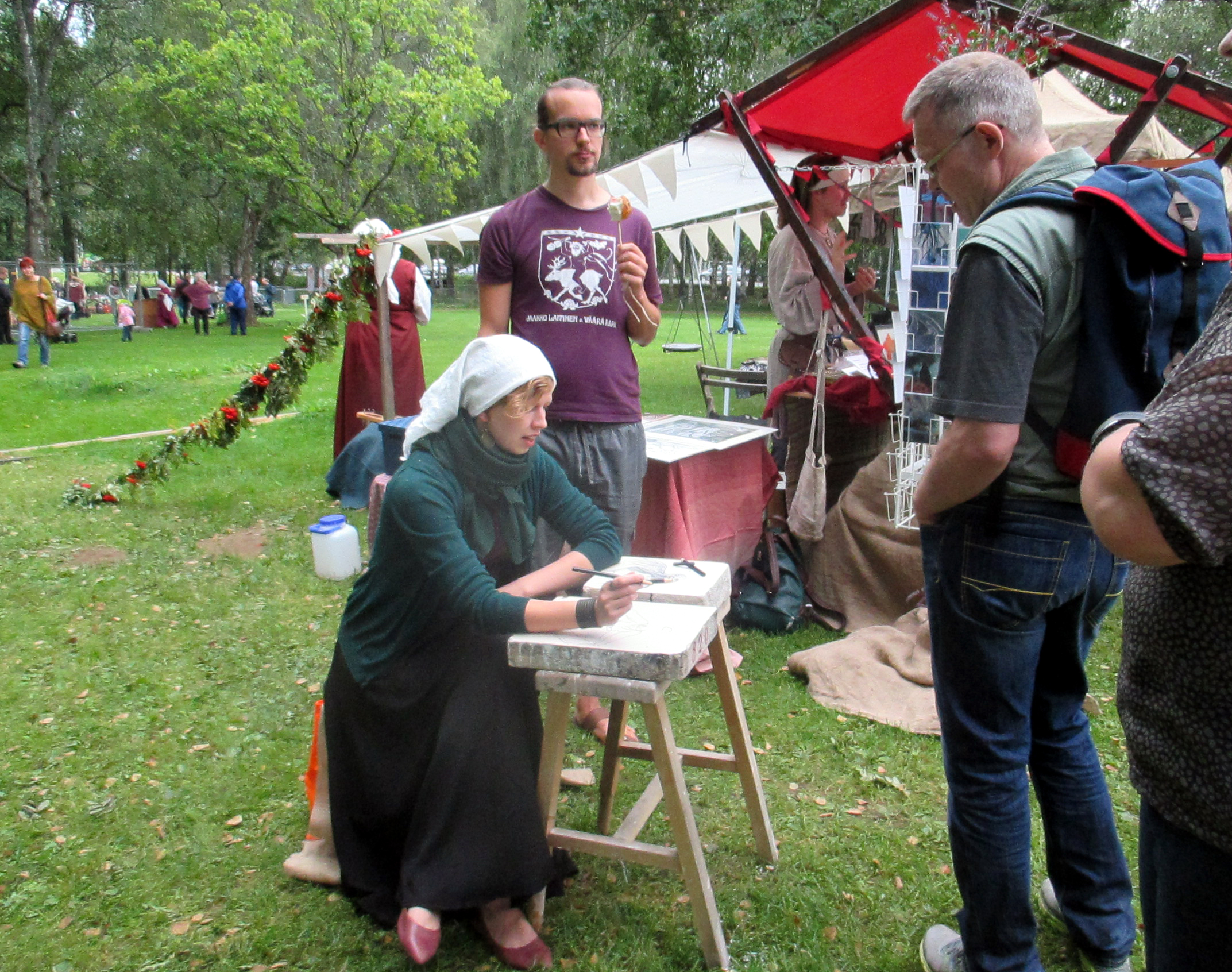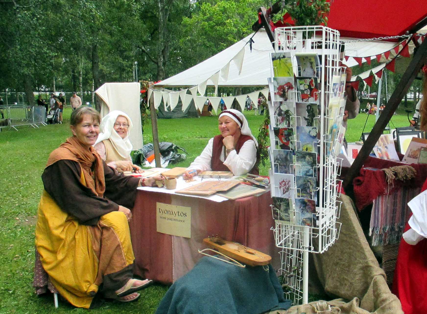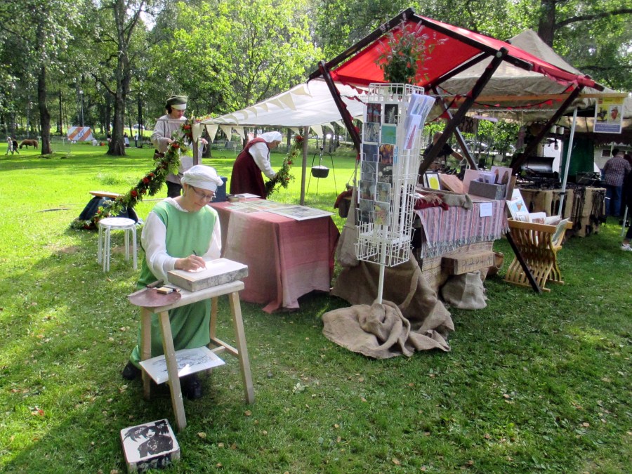 Meillä oli työnäytöksia ja myynnissä grafiikanvedoksia, taidekortteja, kirjanmerkkejä sekä keskiaikahenkeen sopivia paperinukkeja. Perjantai oli yleisölle ilmainen päivä. Väkeä riitti lähes tungokseen asti.