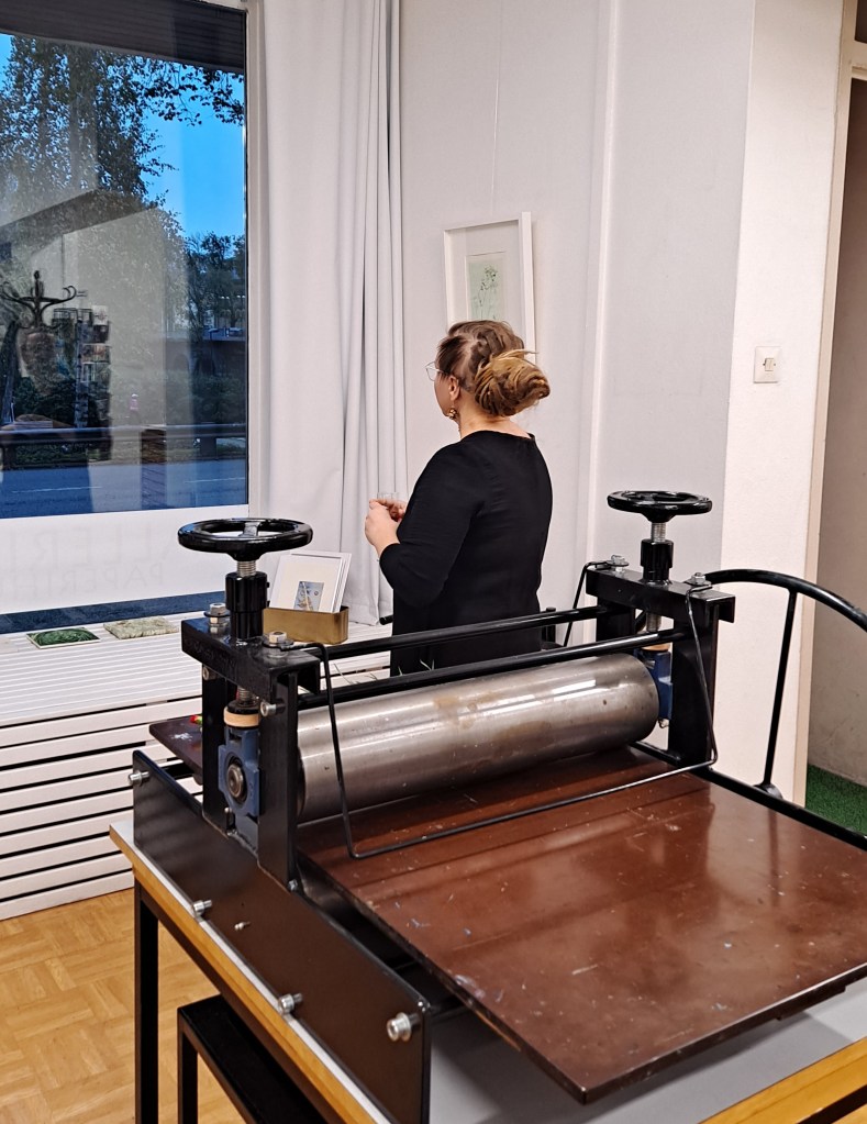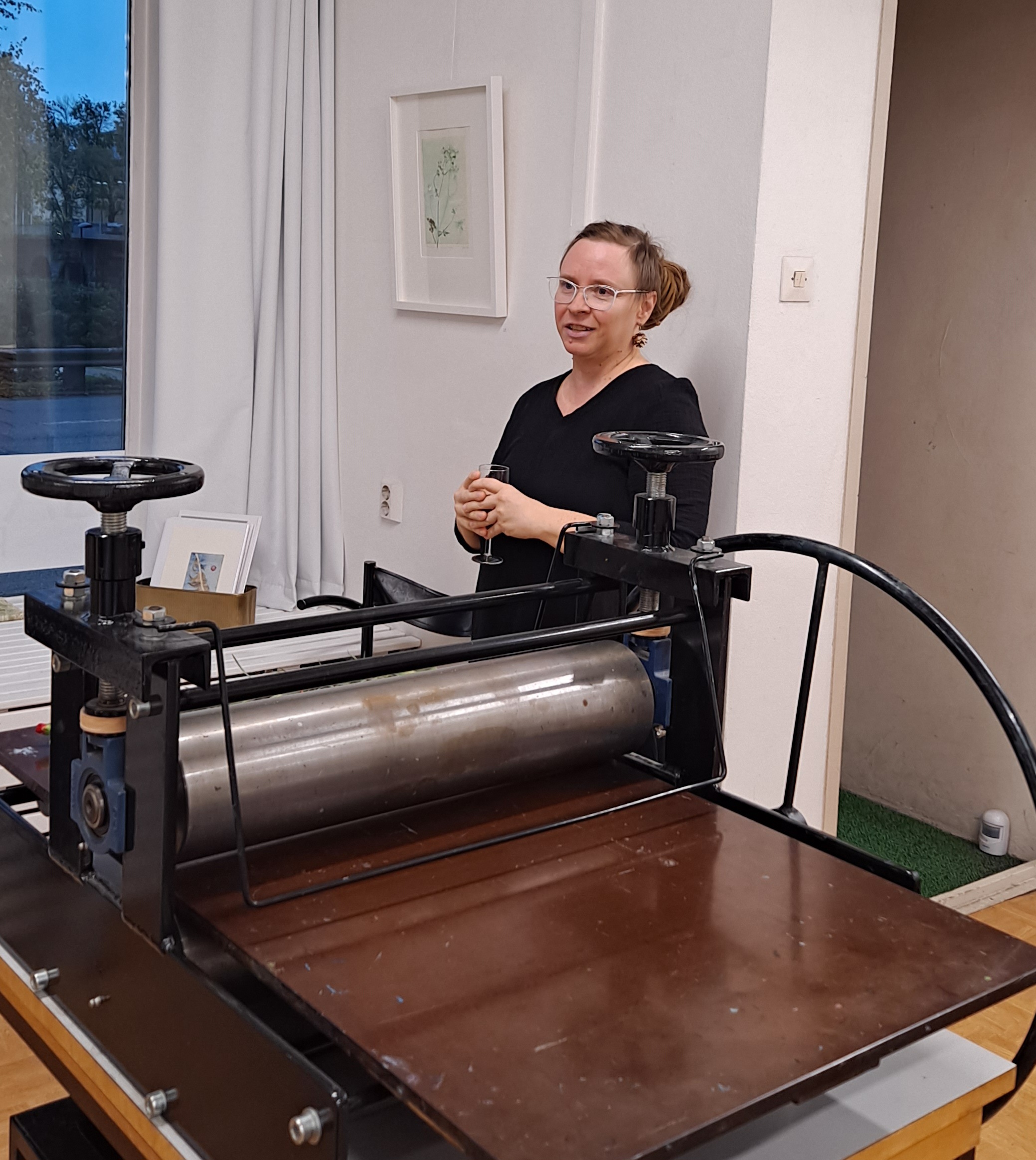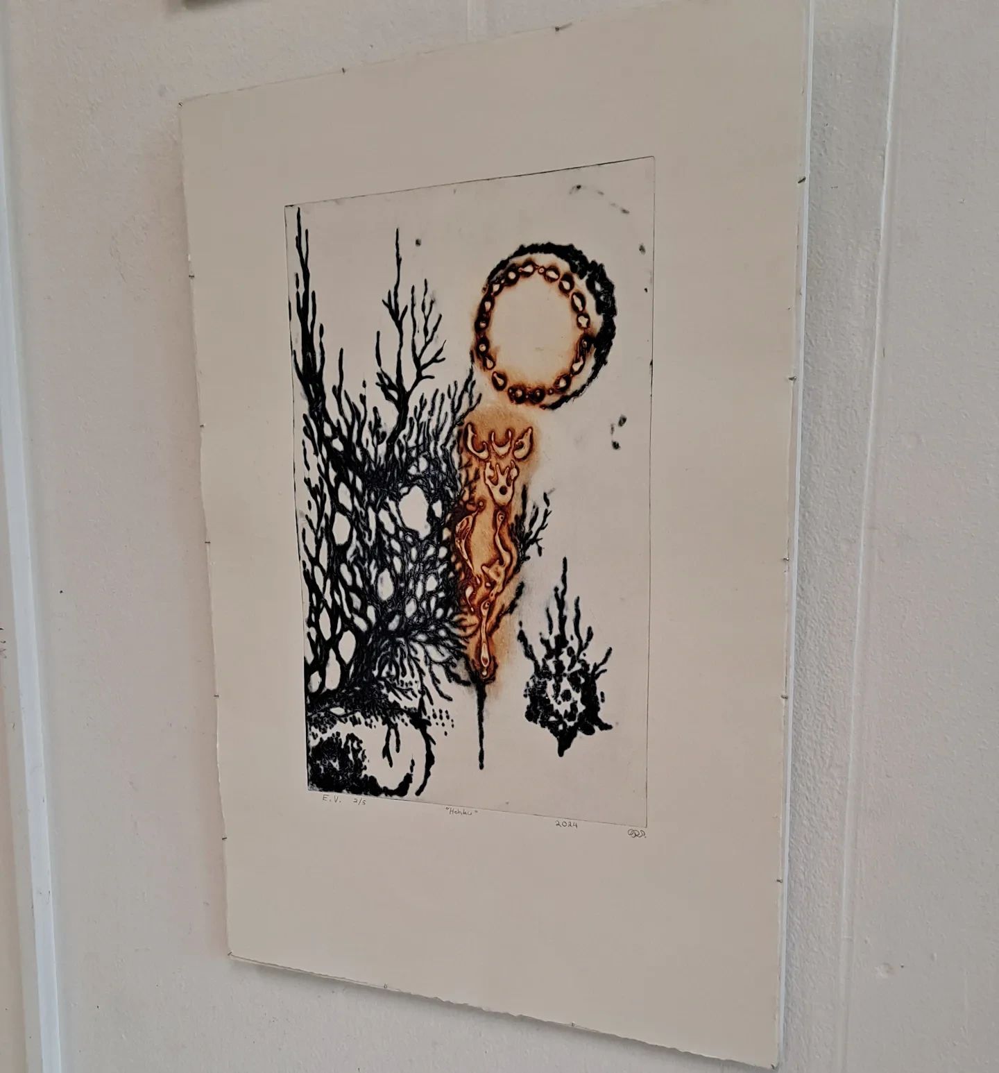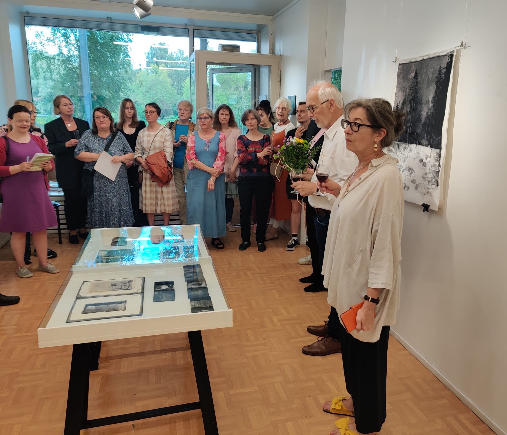 Elokuun alussa vietetyt avajaistet olivat lämminhenkiset ja mukavat, avajaisvieraat viihtyivät niin gallerian kuin myös grafiikanpajan puolella. Edwina esitteli teoksiaan ja kertoi omasta taidetyöskentelystään.