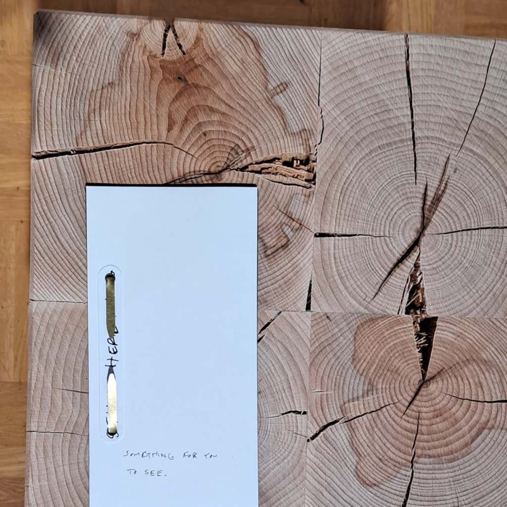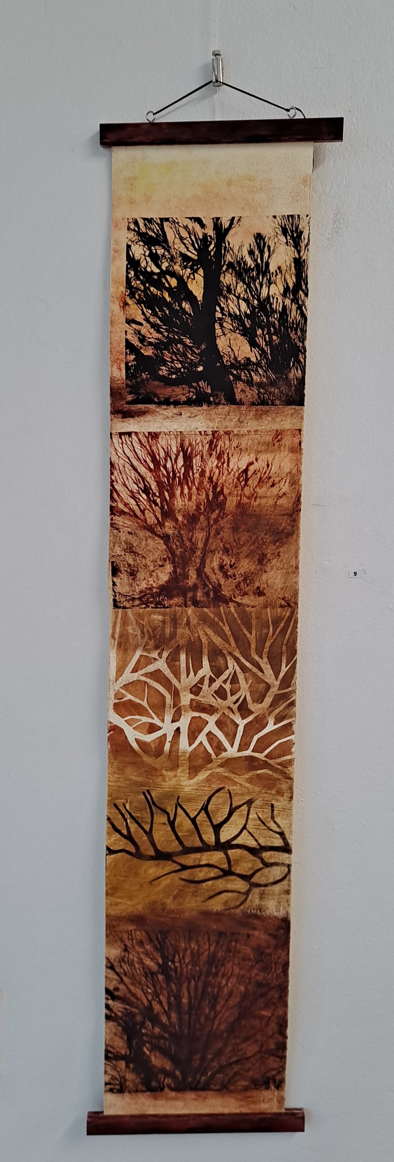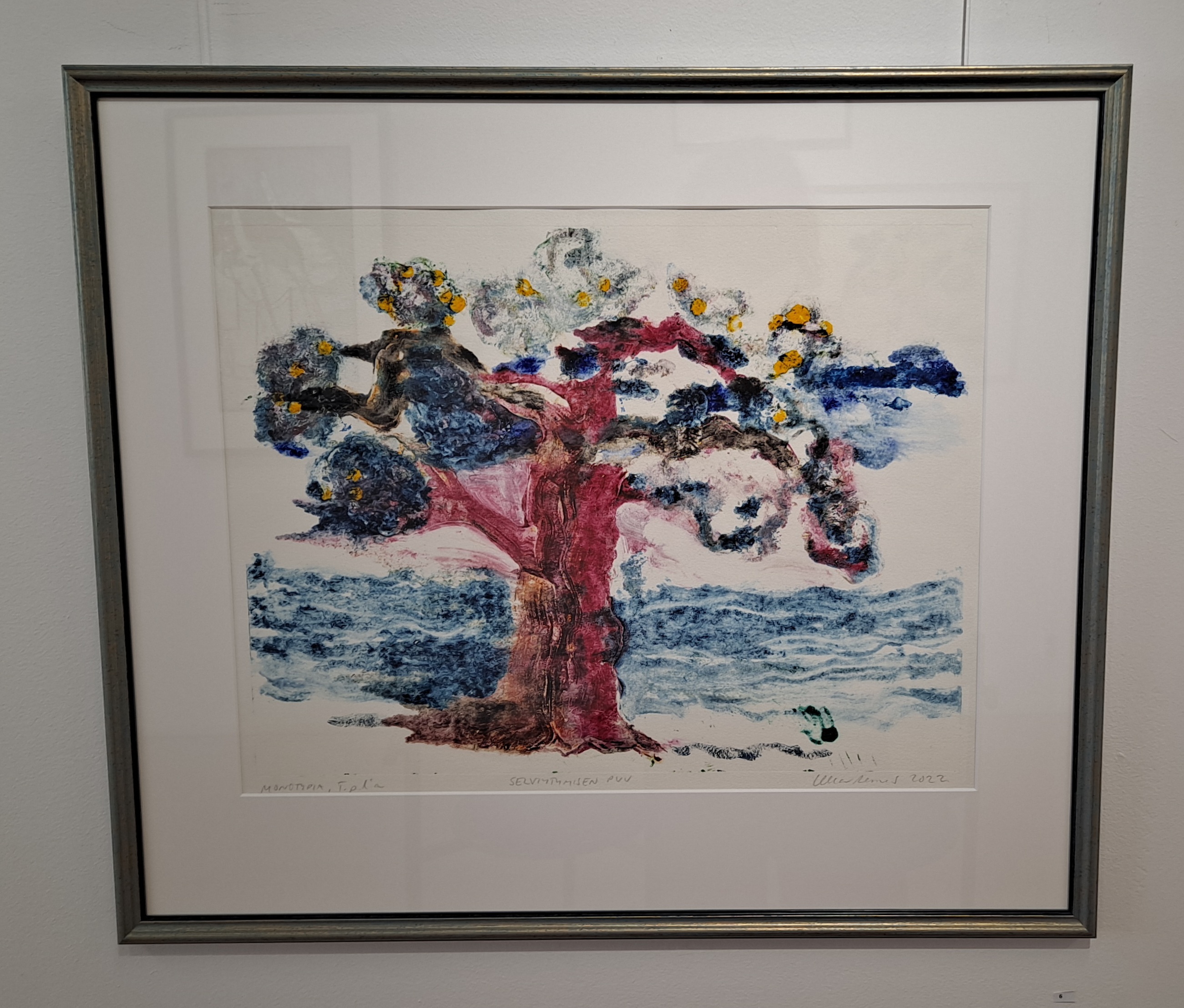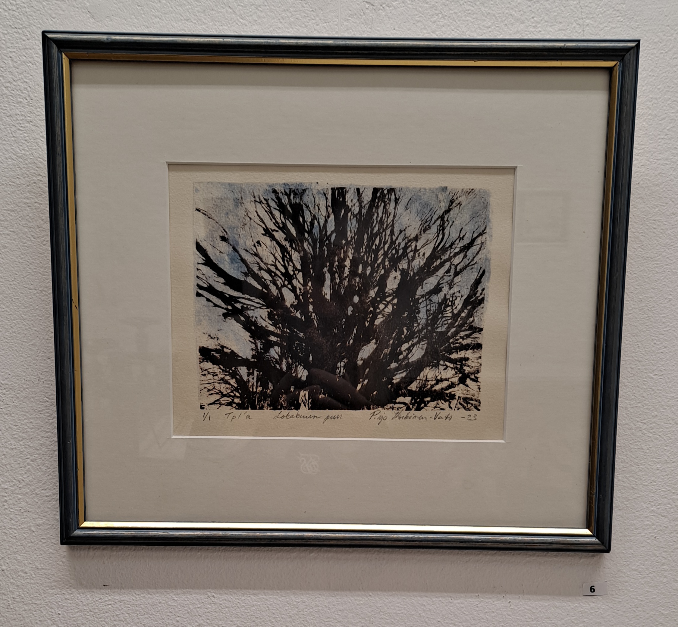 Näyttelyssä on puupiirros Kuiskaus, sekä myös kaksi työtä, jotka on nimetty kuukausien mukaan: Marraskuu todella näyttää harmaalta marraskuulta ja Huhtikuun väritys antaa aavistuksen keväästä. Molemmissa tekniikka on puupiirros ja akvarelli.