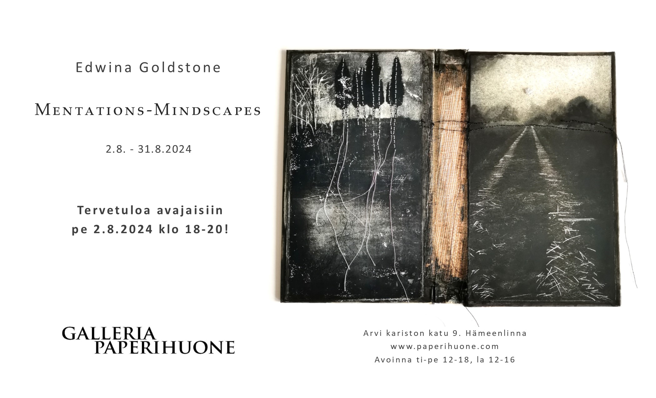 Galleria Paperihuoneella on elokuun ajan esillä Edwina Goldstonen näyttely Mentations-Mindscapes sekä grafiikanpajan puolella Paperihuone ry:n jäsentaiteilijoiden yhteisnäyttely Taidegrafiikan Tilkkutäkki.