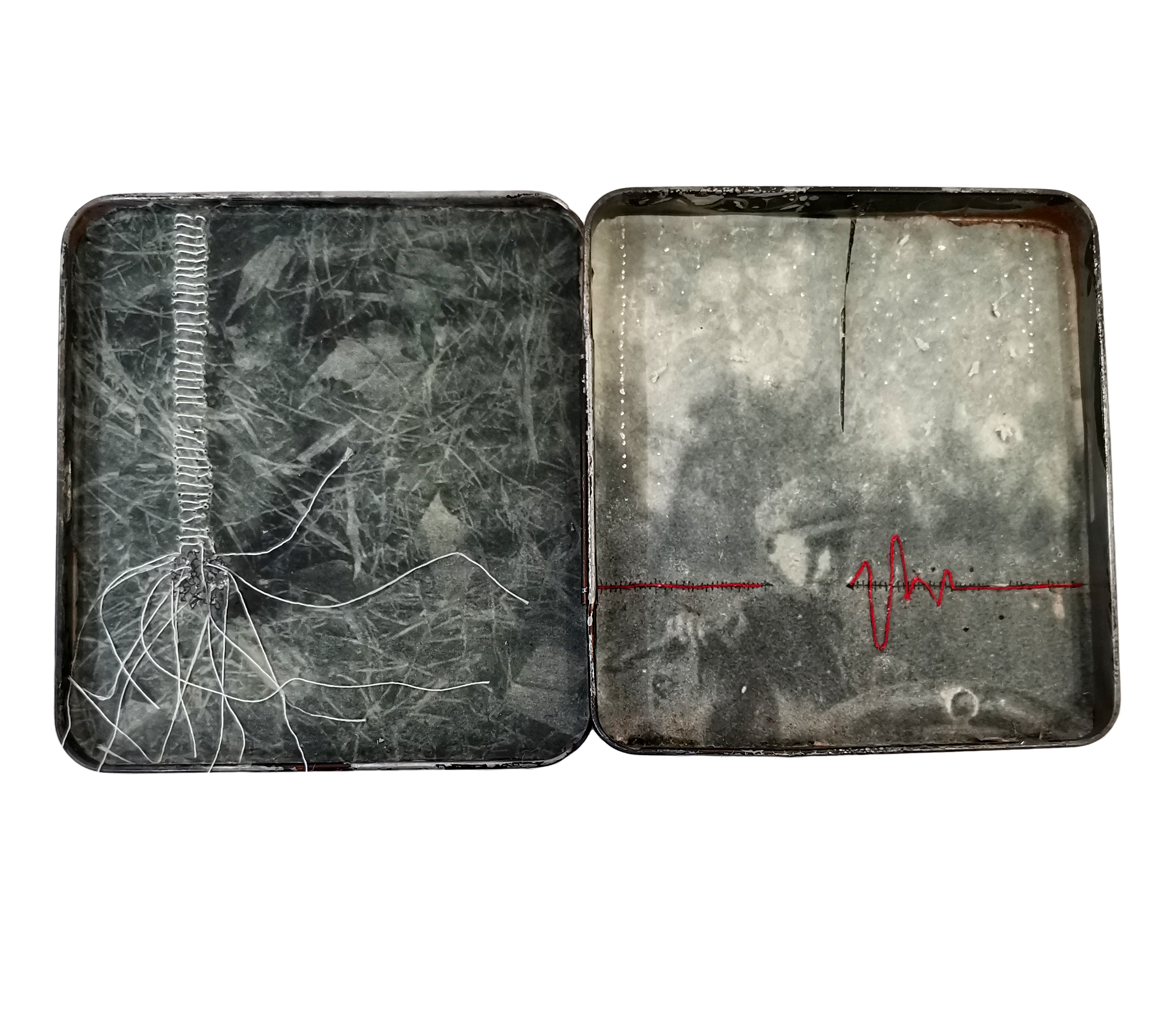 Janina Haapanen opiskelee kuvataiteen maisteriksi Taideyliopiston Kuvataideakatemiassa Helsingissä. Työskentelyssään hän käsittelee painetun kuvan ja sanan historiaa ajan tallentamisen välineenä sekä maapallon luontaista tapaa toimia itse itsensä arkistona. Hänen teoksensa löytävät vaihdellen muotonsa hitaalla käsin työskentelyllä. Toisinaan ne ovat installaatioita tai kaksiulotteisia pintoja kuin myös kolmiulotteisia esineitä. Näyttelyä on tukenut Taideyliopiston tukisäätiö.