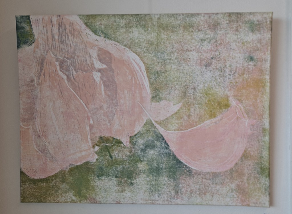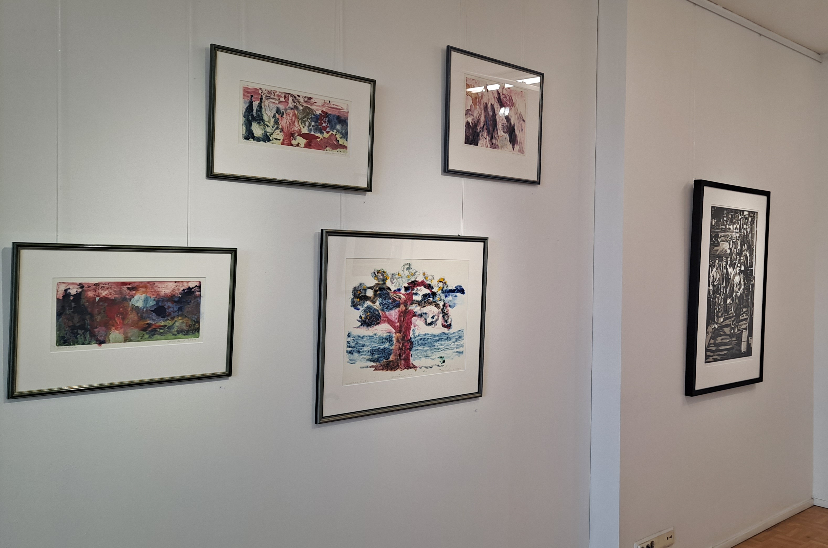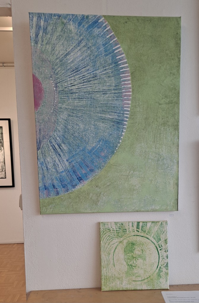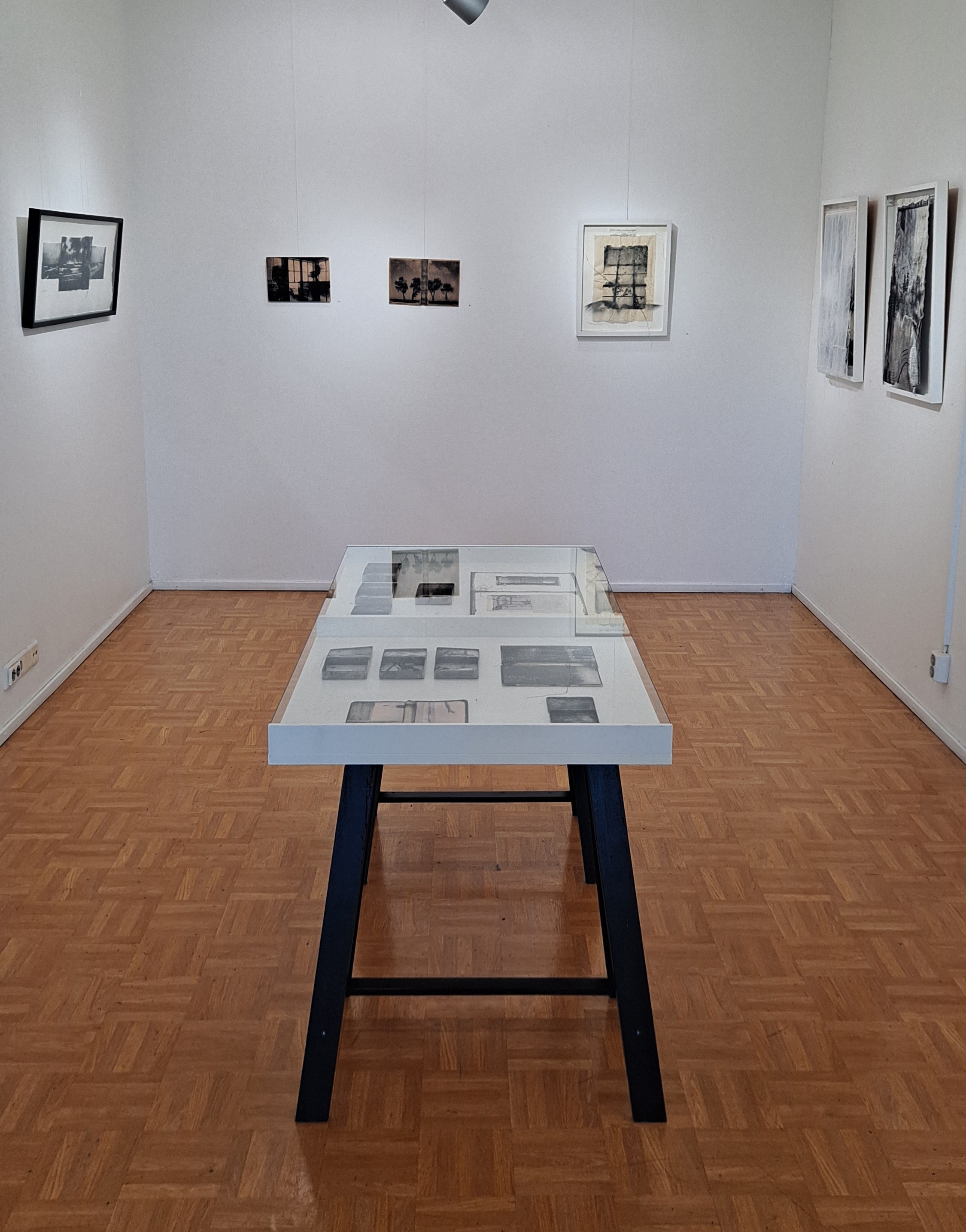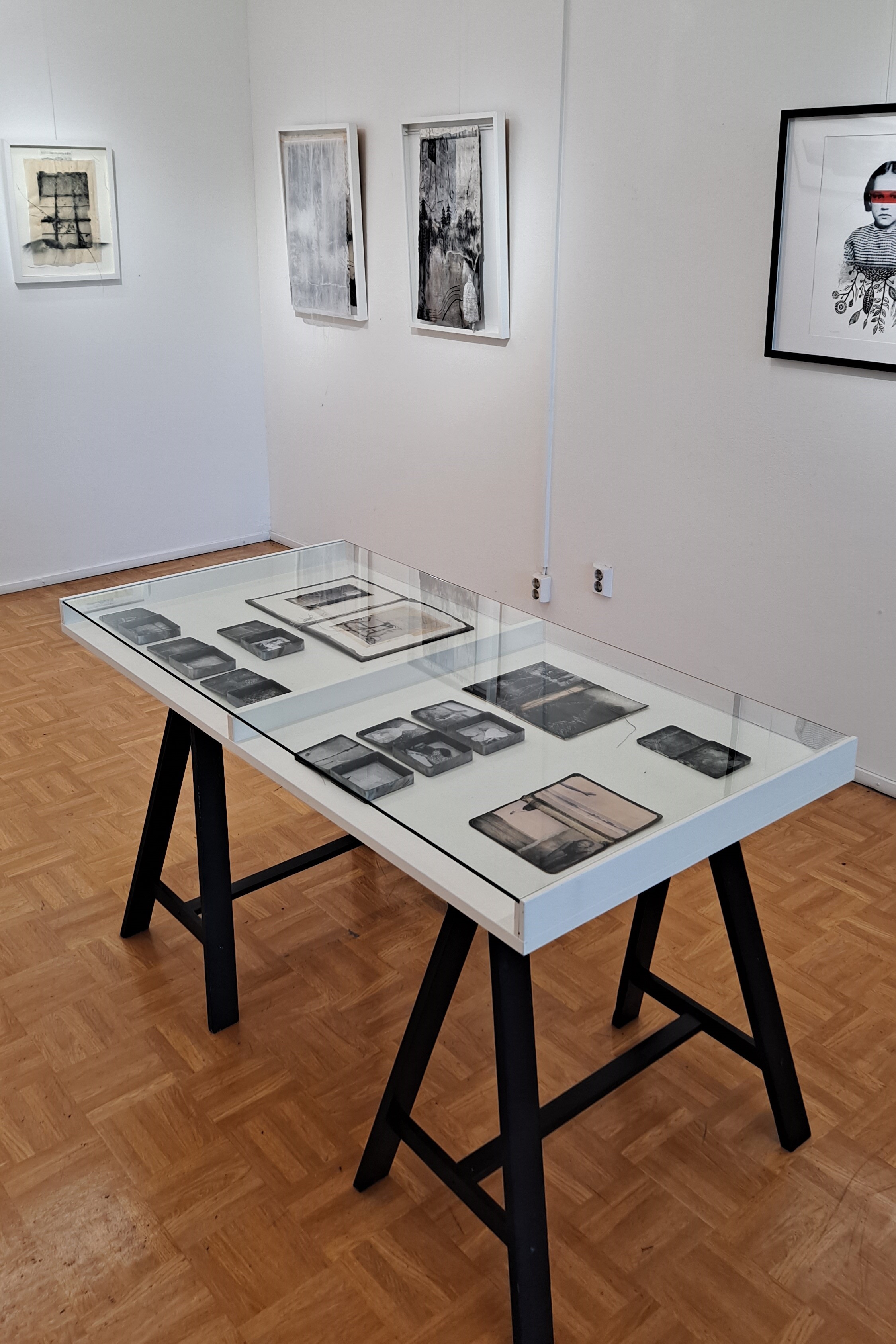 Joulukuussa 3.-19.12.2024 gallerialla oli taidegraafikko Janina Haapasen näyttely Hiljainen Arkisto. Näyttelyn teosten pohjana toimii paperi, johon on yhdistetty serigrafiaa ja mustesuihkutulosteita.