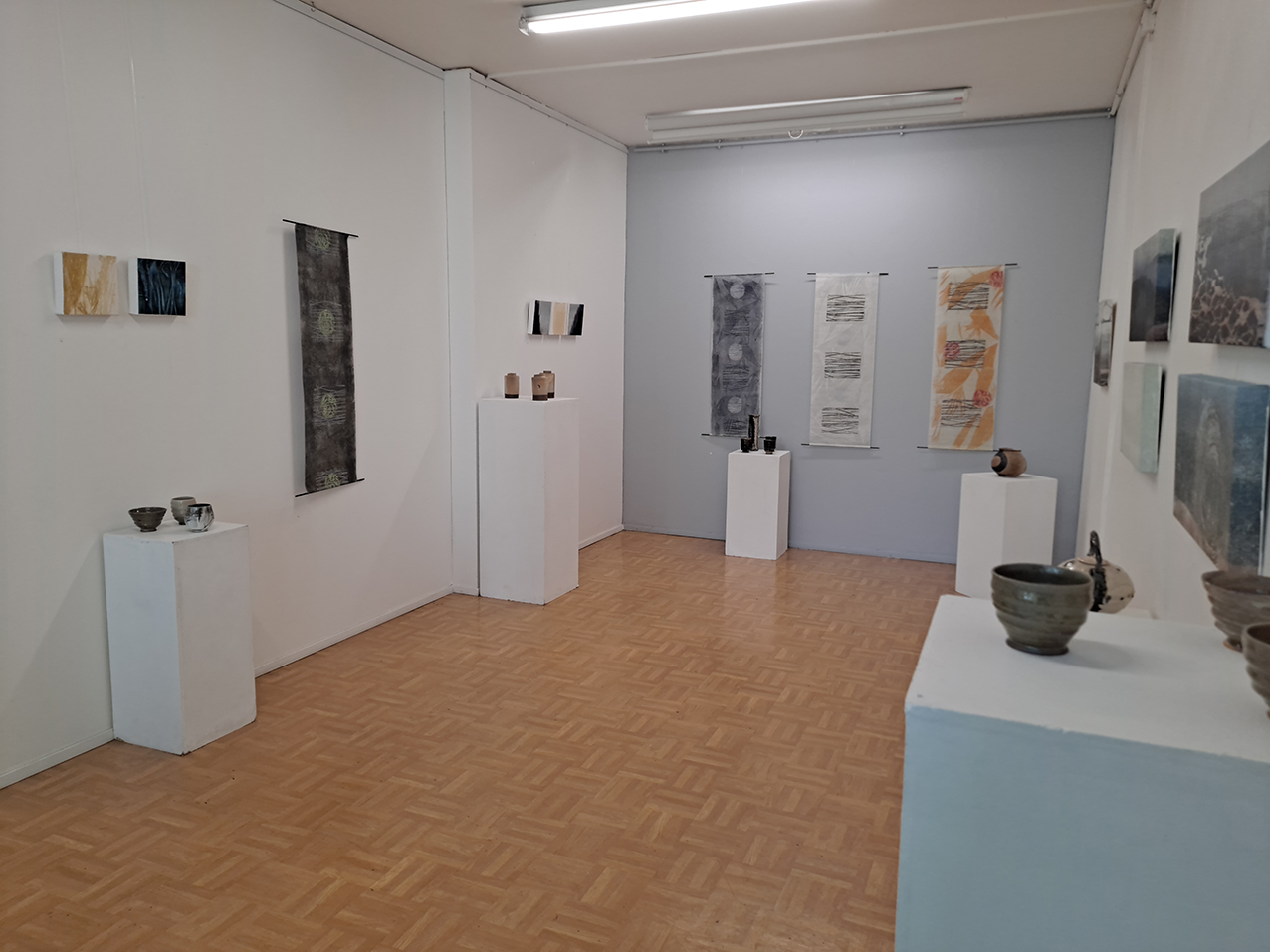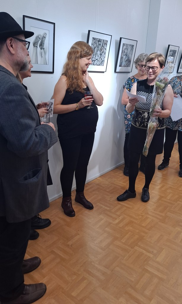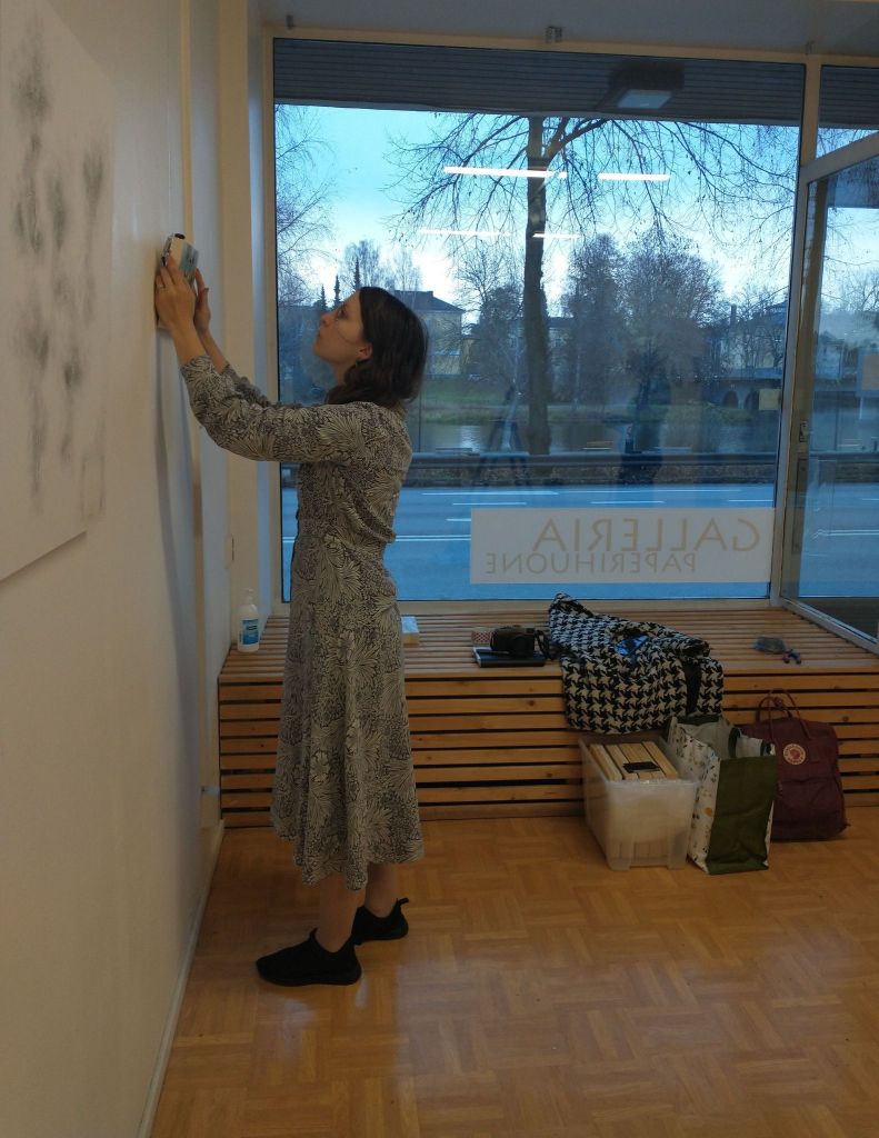 Aallon perhe aloitti näyttelyn rakentaminen torstaina 31.8. Ripustus tapahtui sujuvasti ja iloisissa merkeissä. Kukan pajanäyttelyn ripustus oli samana päivänä klo 16 jälkeen.