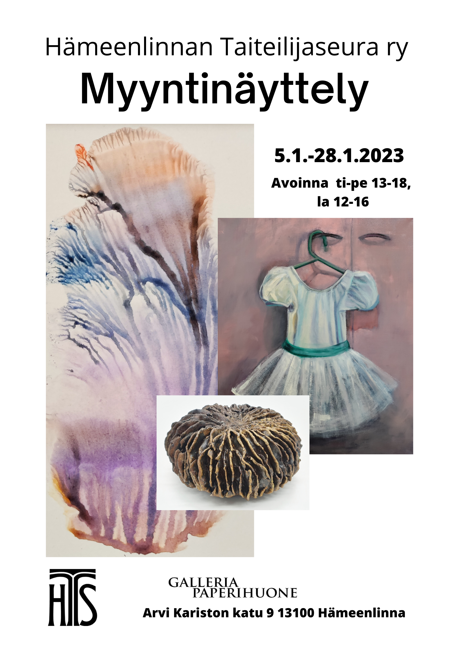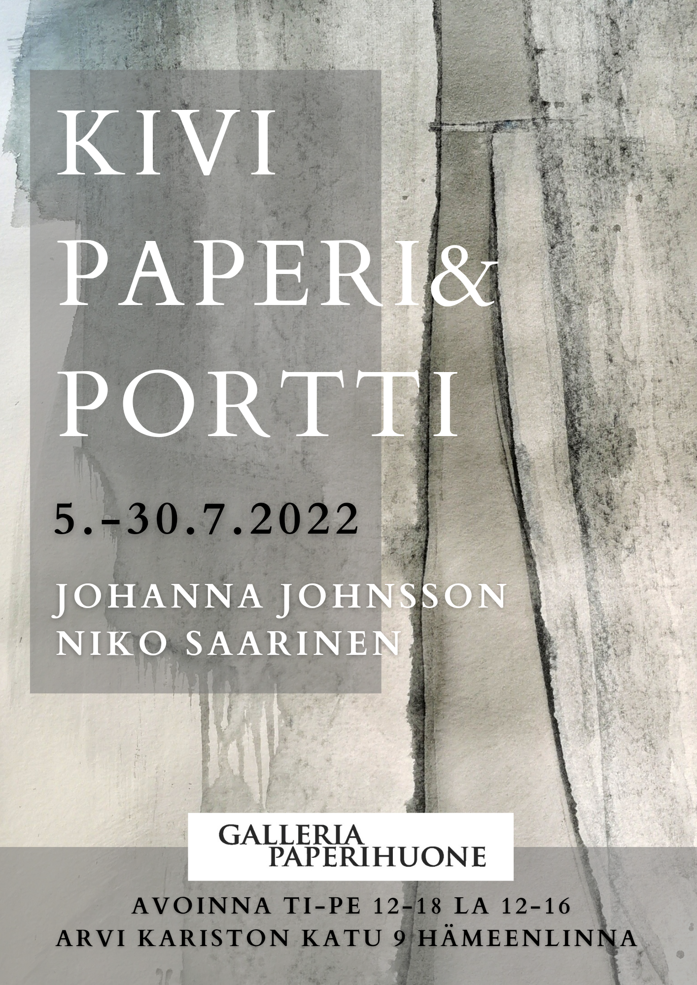 Galleria Paperihuone on avoinna ti-pe klo 13-18 ja la klo 12-16.