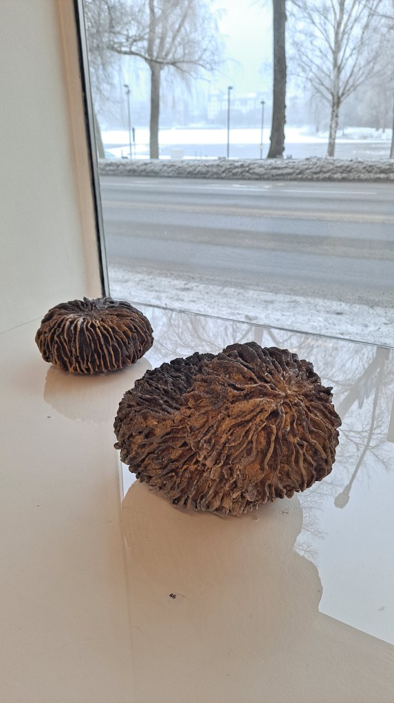 Paperihuone ry jäsentaiteilijan Kukka Pitkäsen grafiikanpajan näyttely koostuu luonnon muotoja kuvaavista teoksista.