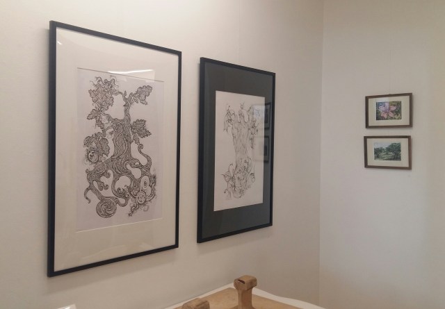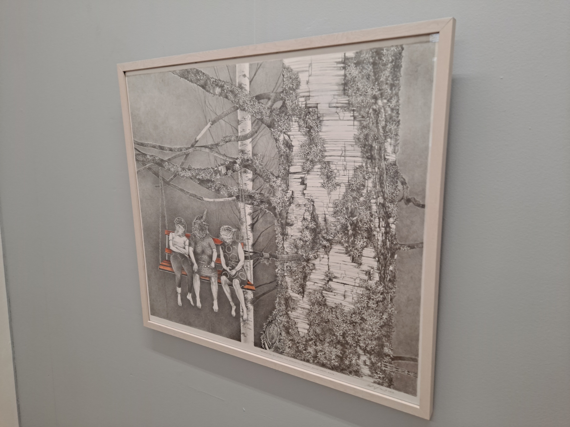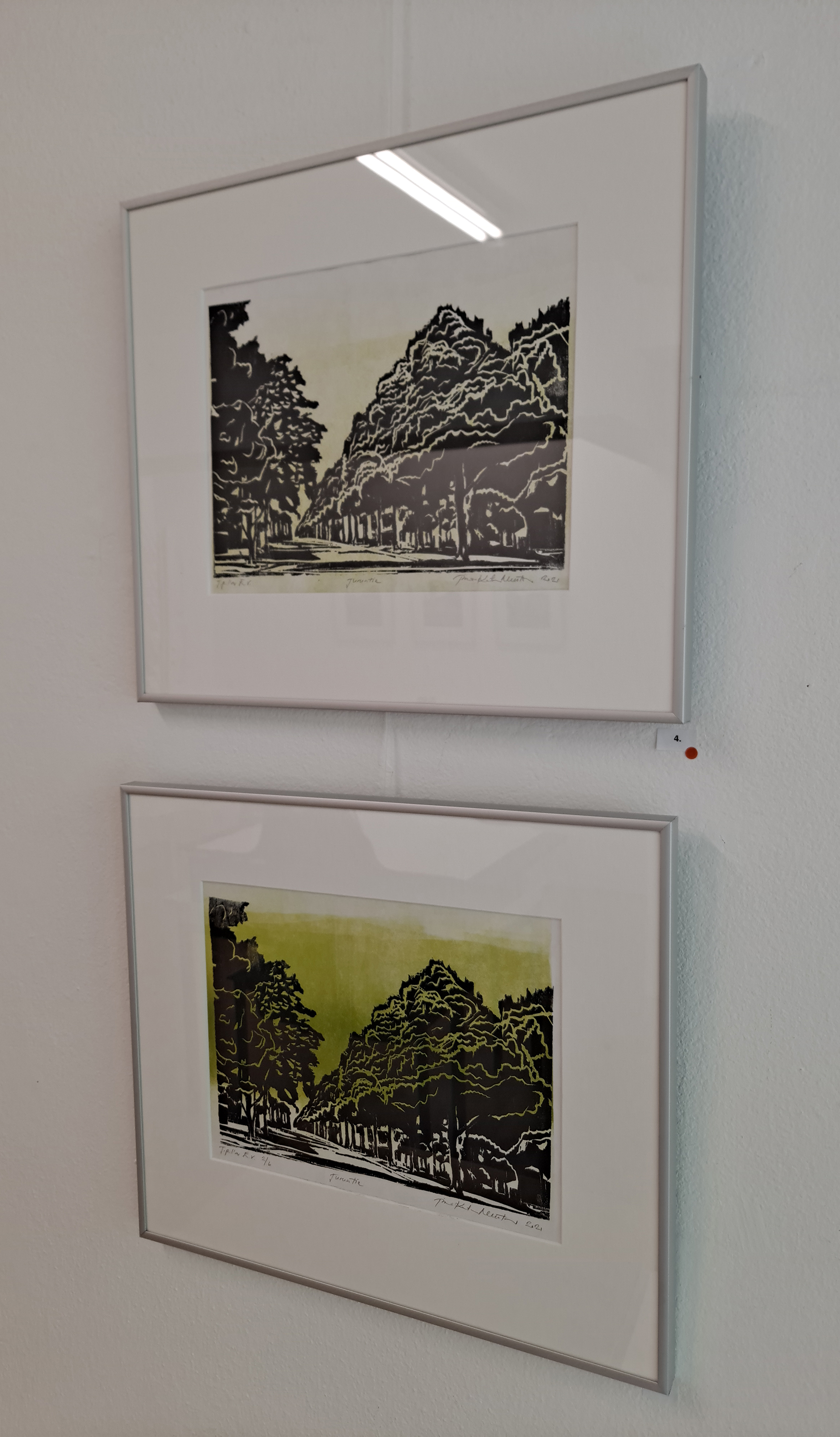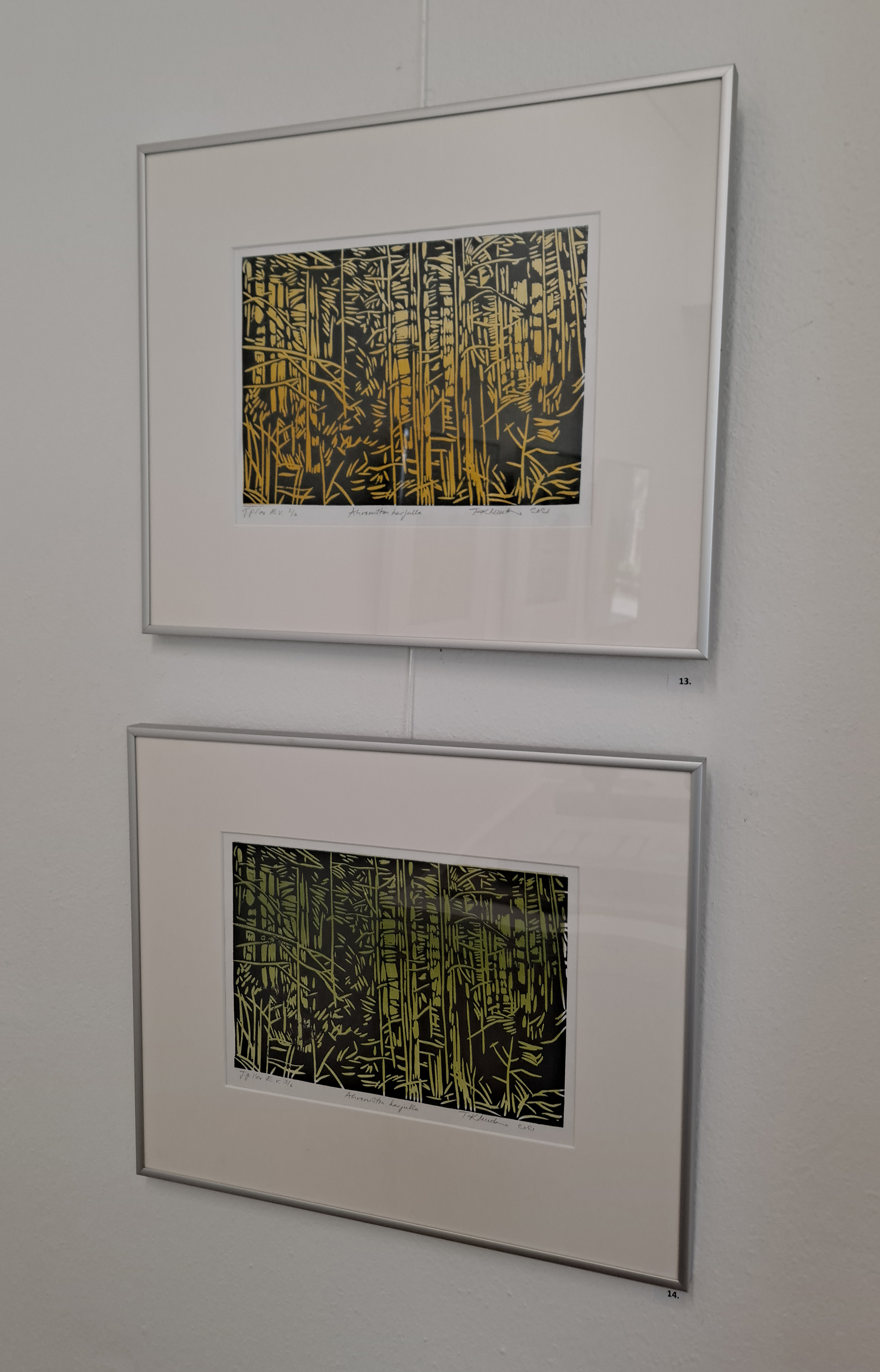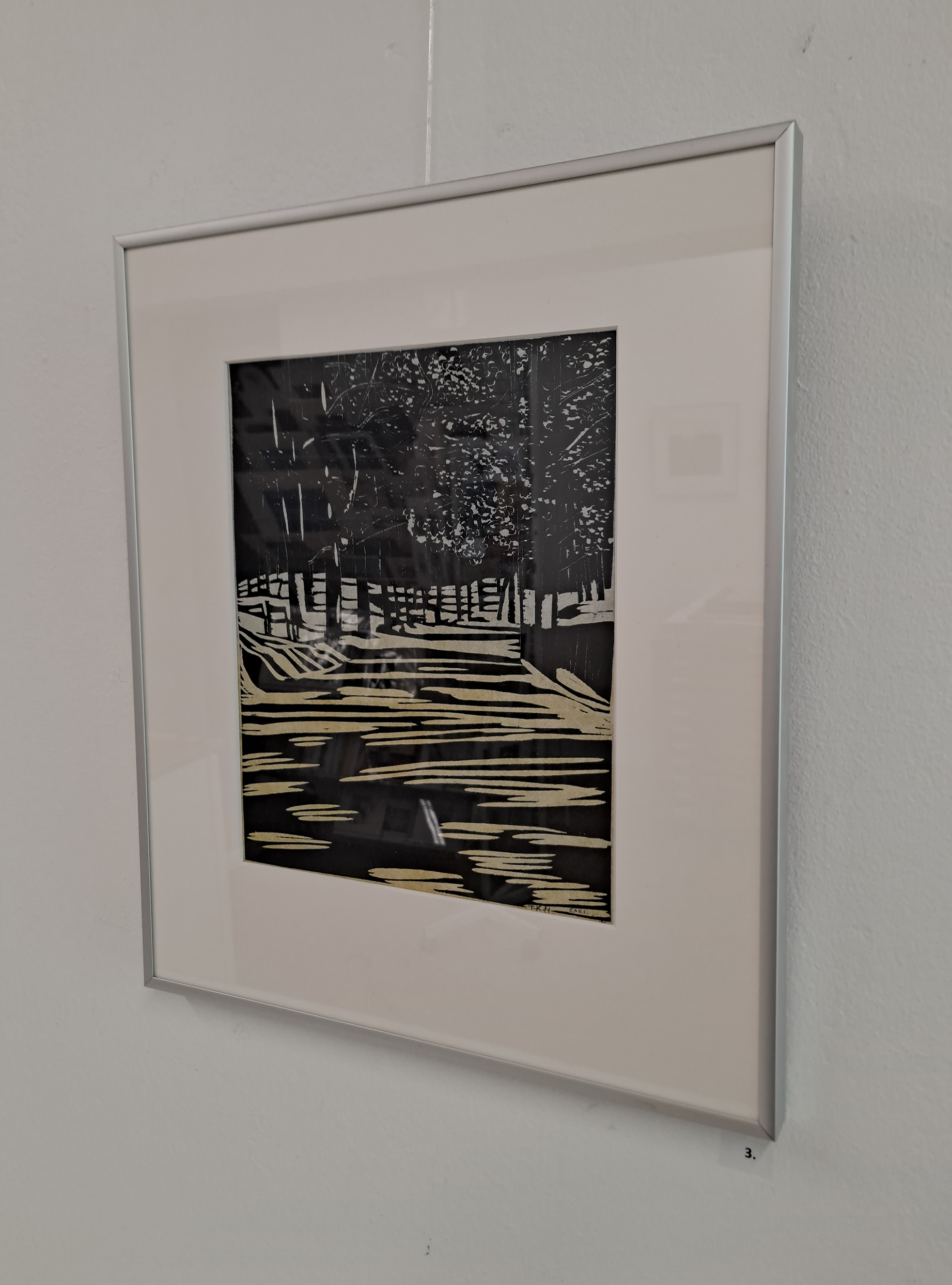 Grafiikanpajalla on Paperihuone ry jäsentaiteilija Tiina-Katriina Mustosen puupiirroksista koostuva näyttely Valo ja varjo.