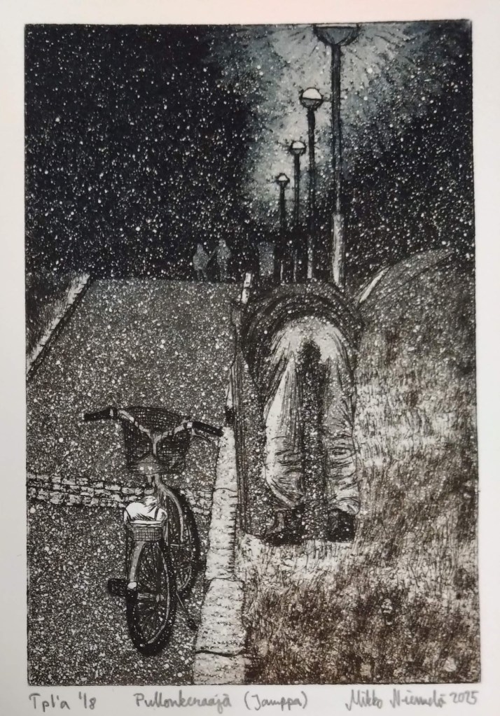 Grafiikan töissäni olen tutkinut ennen kaikkea ihmistä ja luontoa, yhdessä ja erikseen, yhteiskunnan ja ajan ilmiöihin kietoutuneena. Tekniikoista minulle läheisimmäksi on viime vuosina käynyt metalligrafiikka, joka yhtäältä kiinnittää perinteeseen ja toisaalta avaa toisin näkemisen mahdollisuuksia. Jokainen työ on kokeilu.
