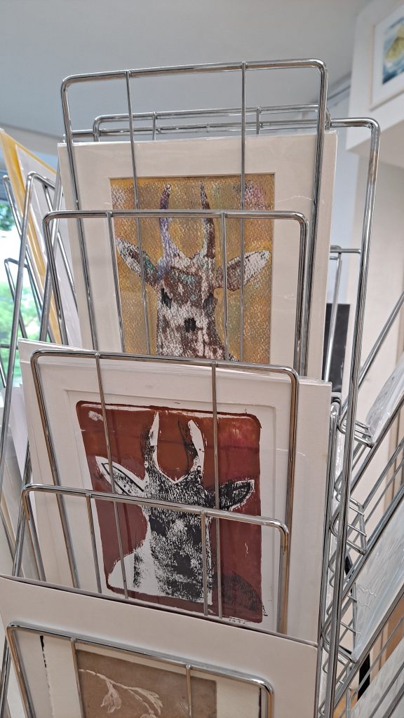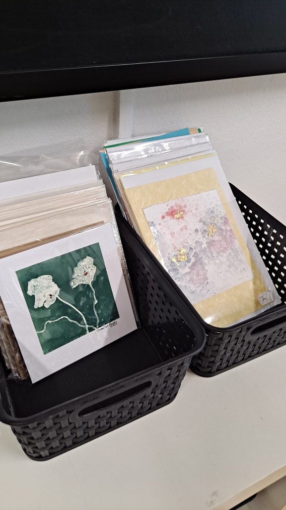 Gallerialla on myös myynnissä jäsentaiteilijoiden grafiikanvedoksia, kehystettyjä teoksia, käsintehtyjä vihkoja, sekä maalattuja, painettuja, ja grafiikan eri menetelmillä tehtyjä kortteja.
