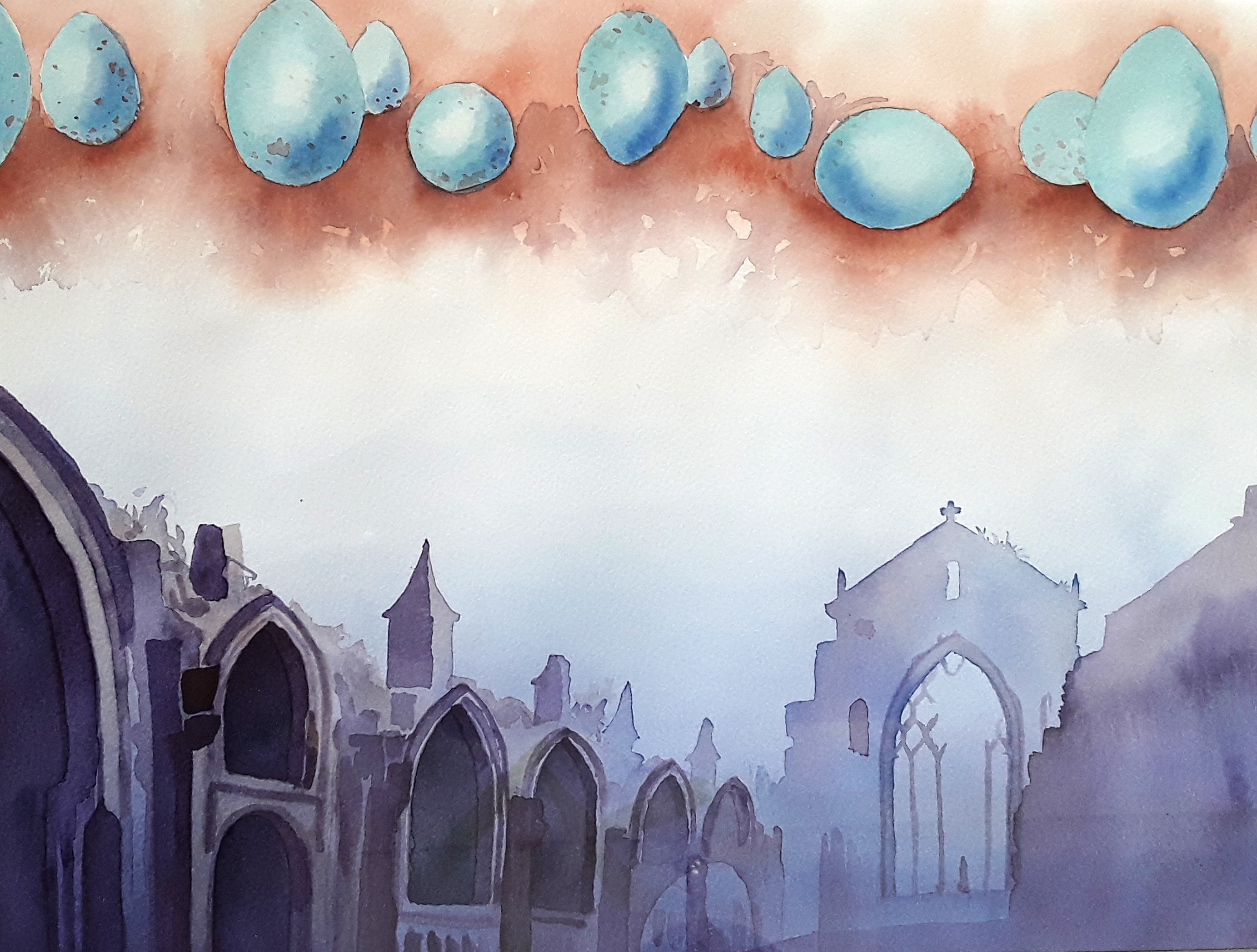 - akvarelli, 26 cm x 36 cm (kehystetty)