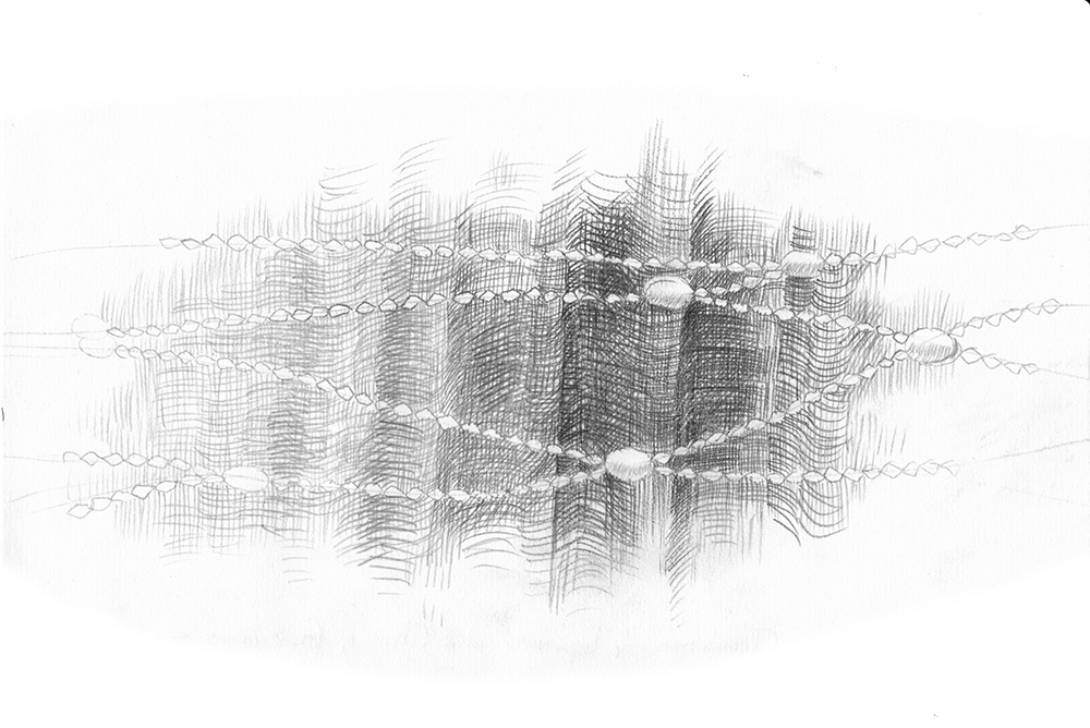 - lyijykynä paperille, 13 cm ×21 cm (kehystetty)