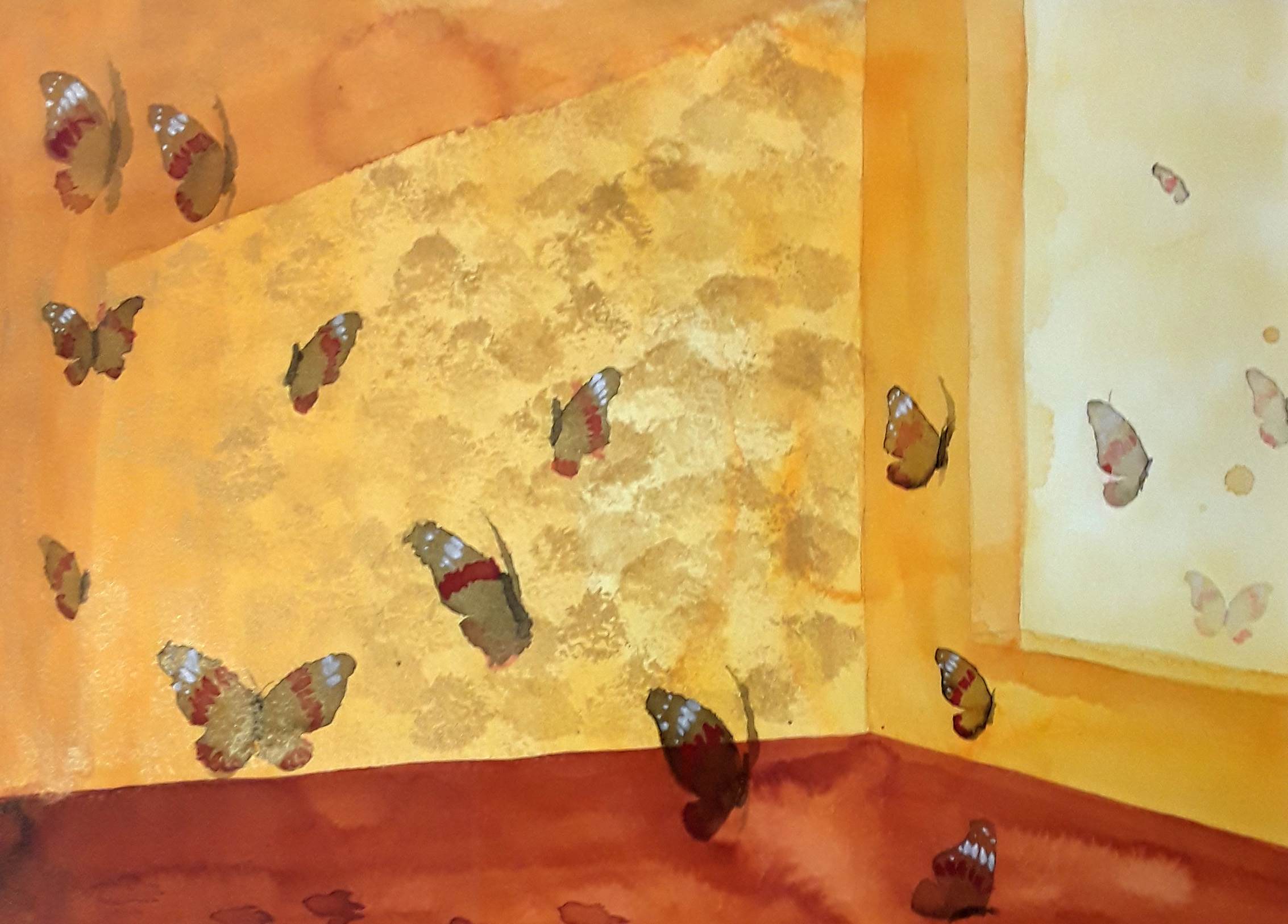 - akvarelli, 18 cm × 26 cm (kehystetty)