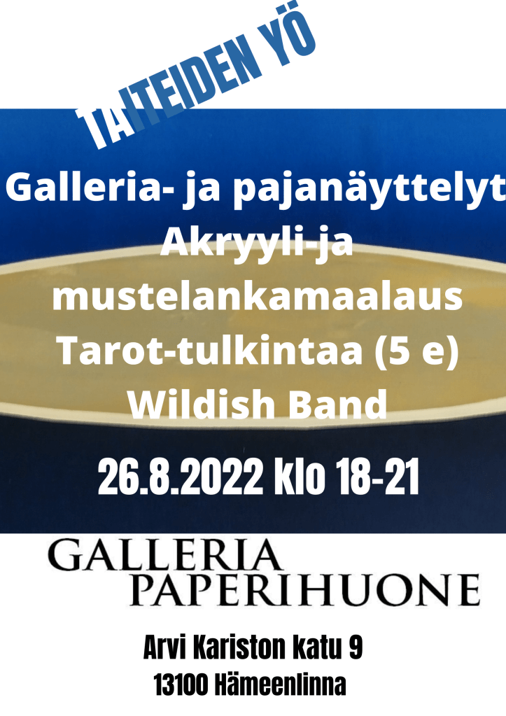 Lisäksi tavattavissa Mama Magdalena klo 18.00-21.00, jolta saat oman tarottulkinnan pienellä korvauksella, sekä Wildish Band esiintymässä Paperihuoneella klo 18.30!